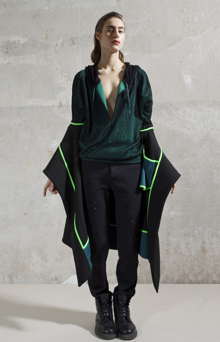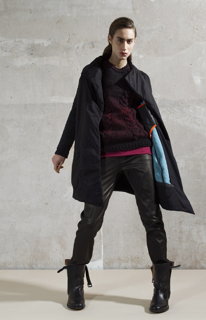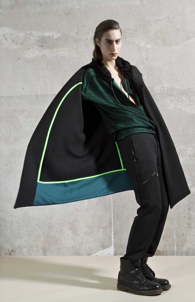 Hard/Soft–Bringing in the upcoming fall/winter 2013 season, newly funded label Brownie & Blondie, headed by Fabrice Couturier, blends together soft aesthetics with structural lines and silhouettes, creating a collection that gravitates towards polar opposites. The pieces explore the contrast between the flowing, drapery details and cozy knits against the sharp shapes created by precision tailoring. Finished with electric hues and a rock ‘n’ roll vibe, the collection embraces modern sportswear and technical design.