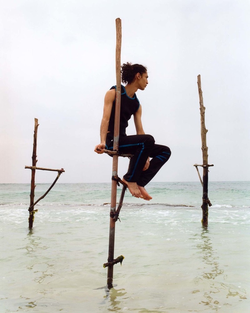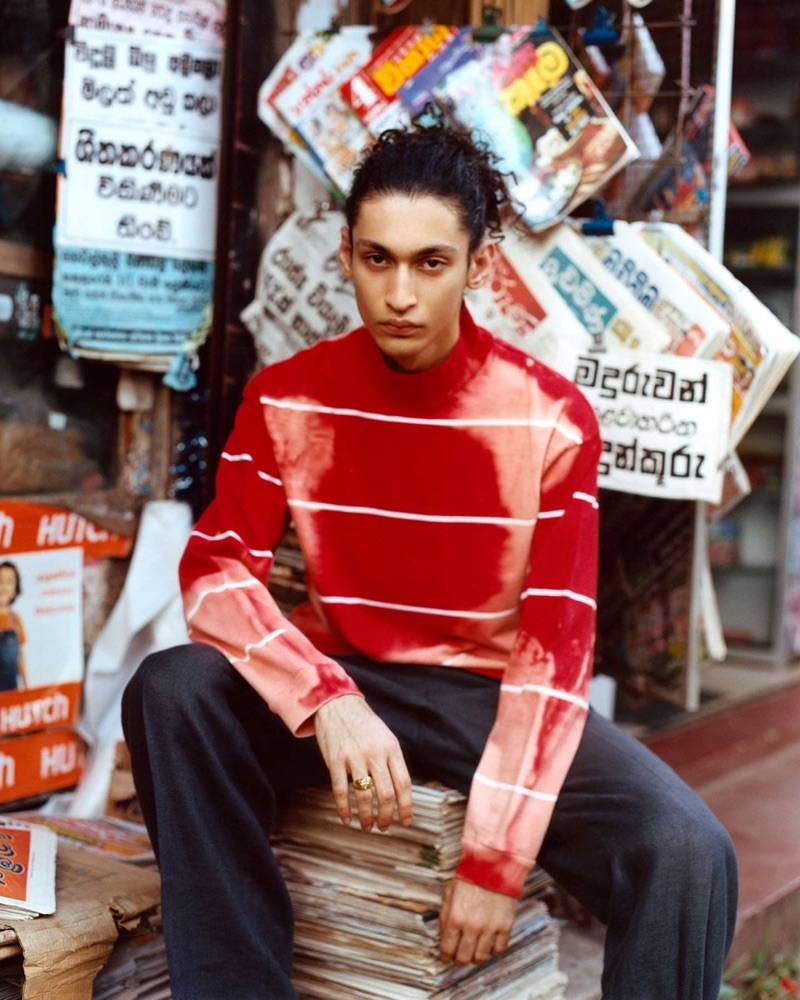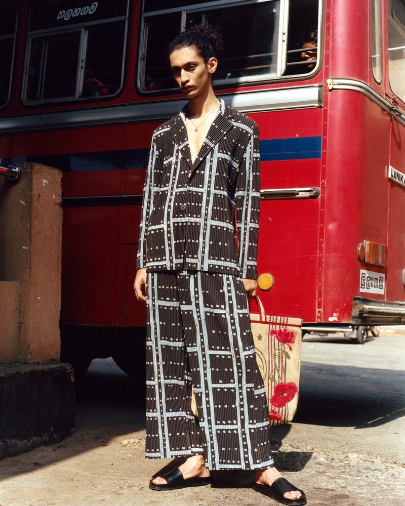 PinExploring Sri Lanka, Sami Younis dons an Alexander McQueen sweater vest with Mackintosh trousers for Browns’ spring-summer 2019 campaign.