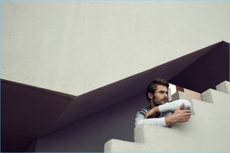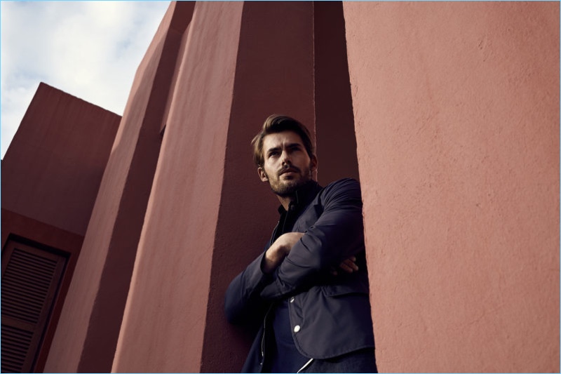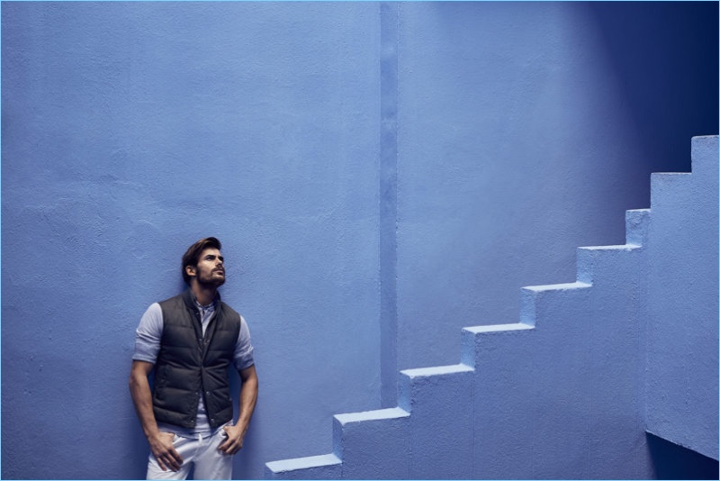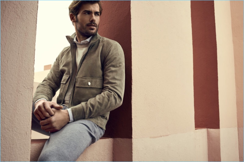 Neiman Marcus highlights its latest looks from the brand with an outing captured by photographer Alessandro Burzigotti. Wearing sleek men’s staples, Jacey Elthalion steps into the role of stylish leading man. The British model sports lightweight sweaters, pleated pants, leather vests, sports coats, and more.