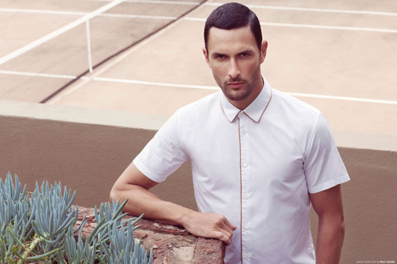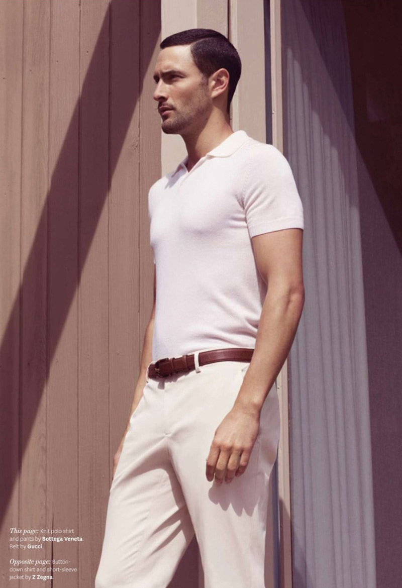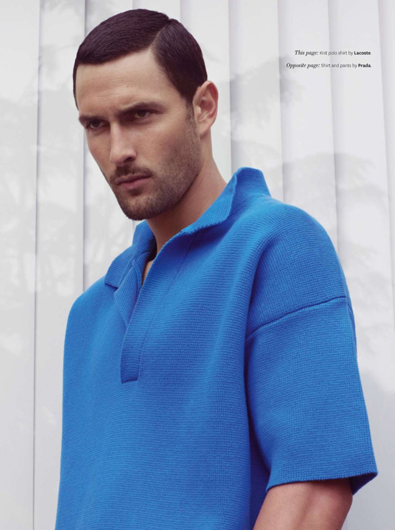 Different Shades–Styled by Grant Woolhead in pieces from the likes of Prada, Lacoste, Bottega Veneta and many others, leading model Noah Mills graces the pages of the June issue of OUT, appearing before Bruno Staub’s lens. Donning a wardrobe that alternates sorbet hues with strong colors or dusty shades, Noah embraces a clean and almost minimal way to emphasize the man’s figure, thanks to linear silhouettes, essential layerings and simple shapes, perfectly balancing style with comfort.