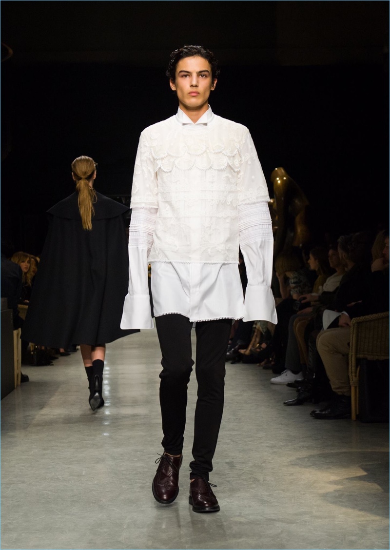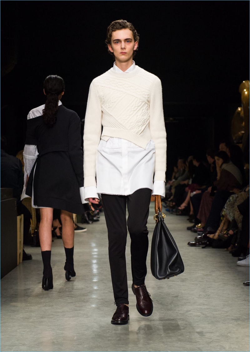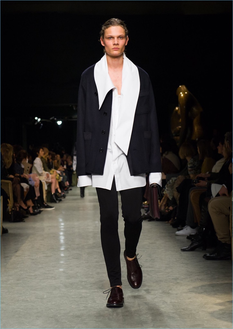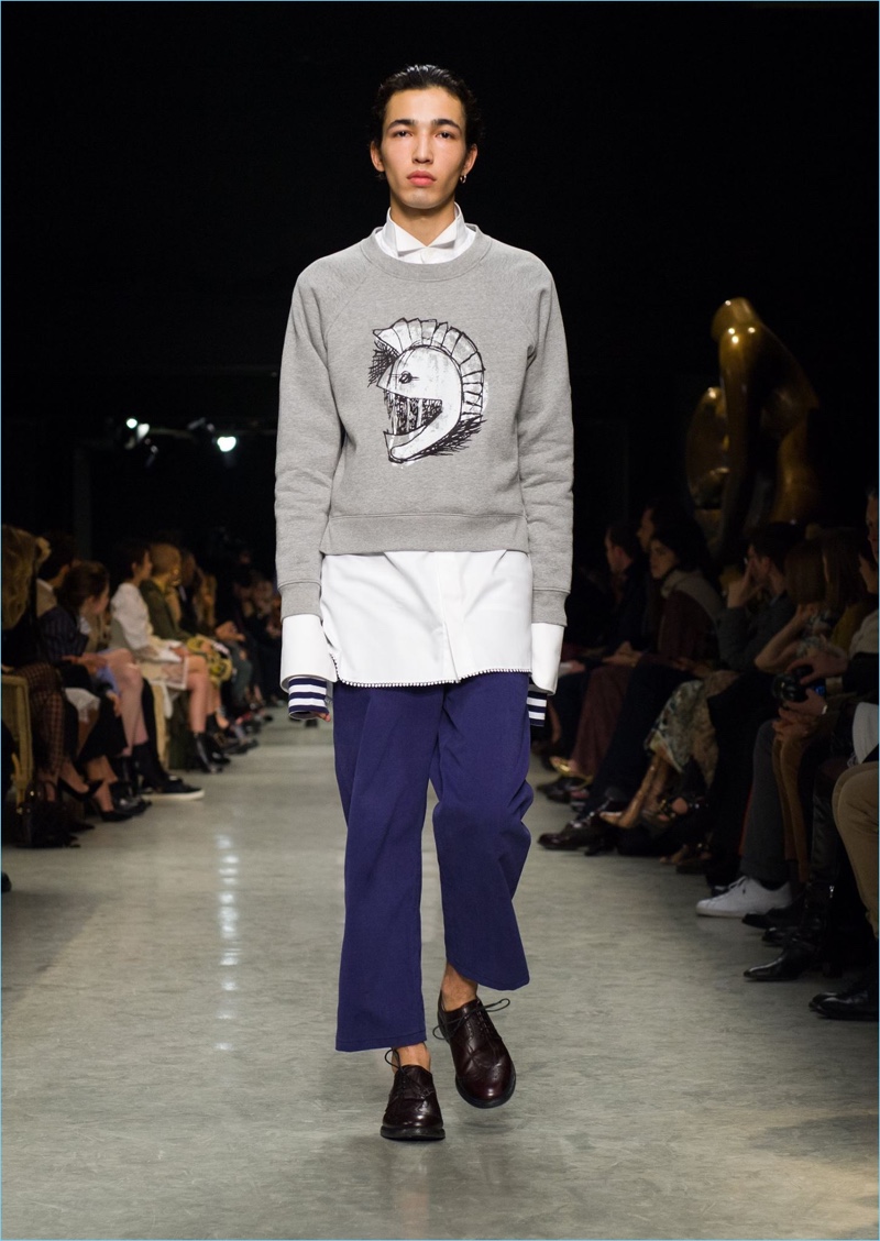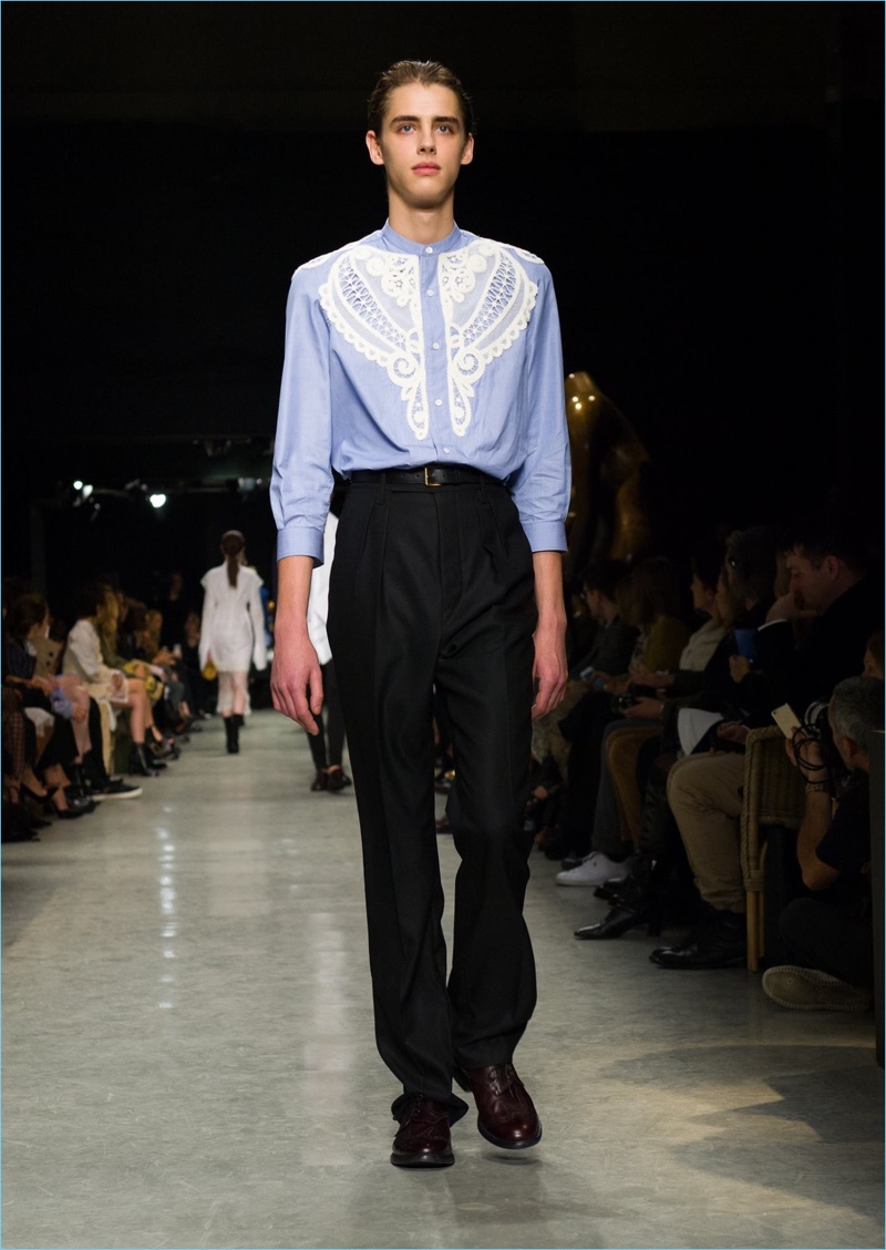 A neutral color palette accents nautical blues for the occasion. Experimenting with elongated sleeves, Bailey delivers pullovers, knitwear, and elegant button-downs. Additional hero pieces for the season range from tailored coats and cropped sweatshirts to relaxed trousers. Shop the collection now on Burberry.com.
