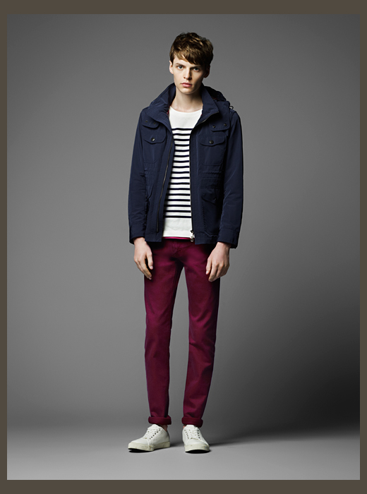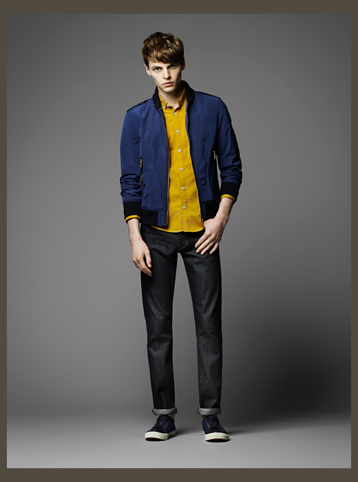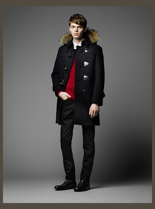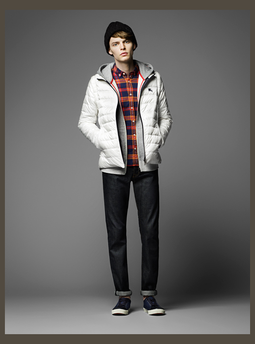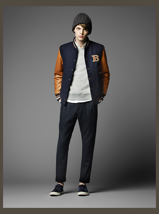 Burberry Black Label Fall/Winter 2014-Japanese offshoot Burberry Black Label taps MMO model John Hein to star in its fall/winter 2014 lookbook. Taking on a collegiate theme for fall, classic outerwear styles come together with knitwear, shirting and other items that take on a fun energy with the use of bright colors used conservatively. Lending individual pieces personality, great moments stand out in the collection such as a single-breasted camouflage coat or a phenomenal varsity jacket.