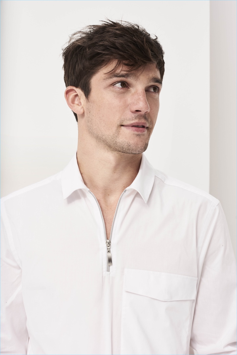 Alexis Petit is once again in the spotlight. The French model stars in the spring-summer 2018 of Burton. He makes quite the impression in the brand’s sleek menswear. Sharp suits in breathable materials come together with on-trend sportswear. Taking to the studio, Alexis wears key items such as a blouson jacket, pajama-inspired top, tropical print shirt, or pleated trousers. The outing also features plenty of light hues that are perfect for summer.