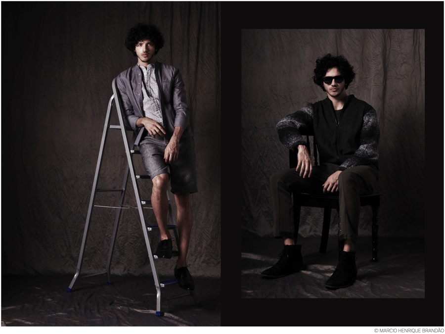 Who Can It Be Now? Photographer Marcio Henrique Brandão unveils his most recent work, featuring OCA model Caio Botelho. The São Paulo-based fashion photographer collaborates with Eduardo Lima for a stunning studio shoot that captures a calm side of Caio as he dons looks from Enkb Menswear, paired with Jorjito Donadelli footwear. / Grooming by Eduardo Lima..