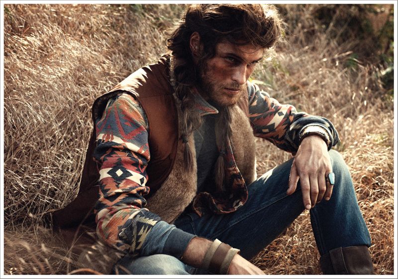 Going West–-I Love Models Management’s Calin Sitar takes on a western role in his latest spread for Viktor magazine n°2. With the shoot helmed by photographer Adriano Russo and stylist Claudette Chabal, Calin dons a range of contemporary pieces from Prada, Versace, Dior Home and more, featuring tribal prints, denim wears and rustic vests to put an urban spin on an archetypal western look.