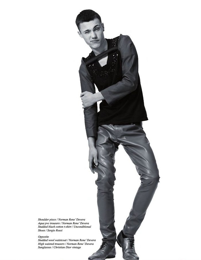 After going blue, Callum Wilson reunites with photographer Dimitris Theocharis to engage in a staring contest for Schön! that happens to end with a wink. Also returning for the outing is stylist Charles Adesanya, who infuses the situation with serious fashion from Norman Rene’Devera and Ioannis Dimitrousis.