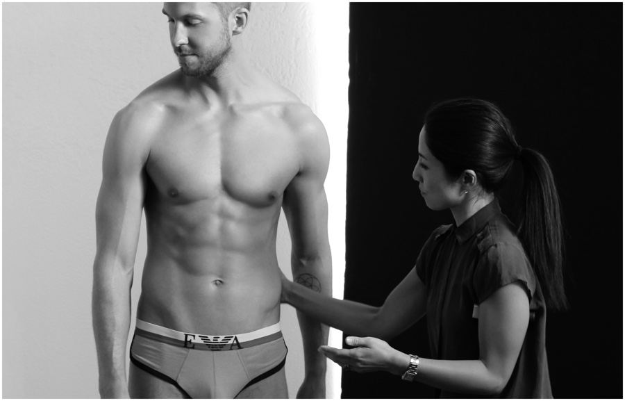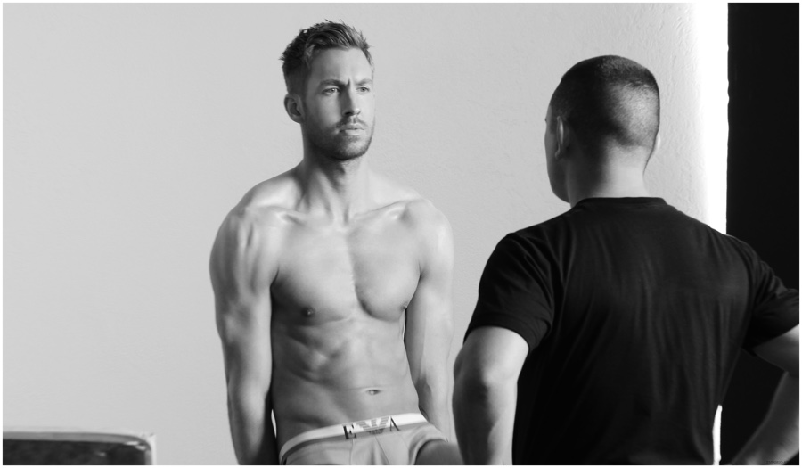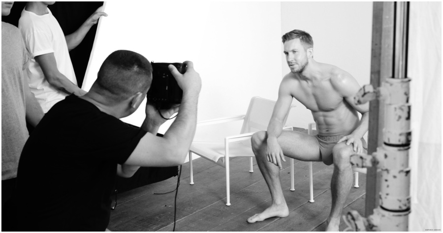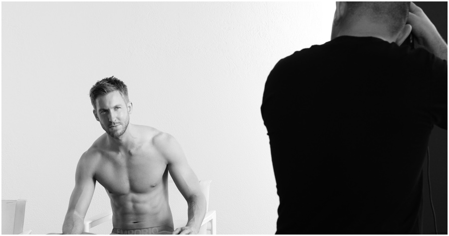 Following a look at Calvin Harris’ new images for Emporio Armani’s underwear campaign, the Italian label unveils a behind the scenes glimpse at the shoot with photographer Boo George. Also capable of showing off a sharp suit, the 31 year-old DJ is featured in Emporio Armani’s ready to wear campaign as well.
