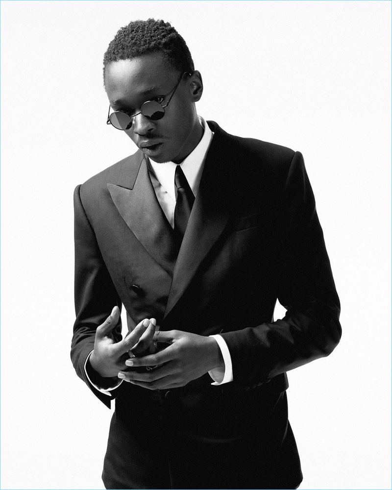 Young actor Alex Hibbert turns on the charm in a Calvin Klein tuxedo.