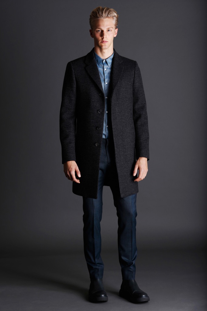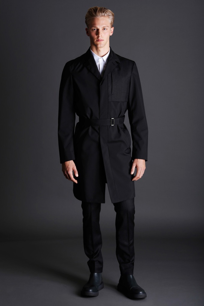 Calvin Klein Collection Men’s Pre-Fall 2014–Calvin Klein Collection gets dark and tech savvy for their pre-fall 2014 collection. Approaching the season with enthusiasm, Calvin Klein Collection creative director Italo Zucchelli interjects sportswear essentials with a sharp modern quality. While an aerial view of Tokyo provides an electrifying graphic image in shades of navy, minimalist details cater to outerwear with clean slick lines. Mixing tones of earthy brown and charcoal gray, the collection comes full circle with a smart approach to transitional garments for the classic man of style.
