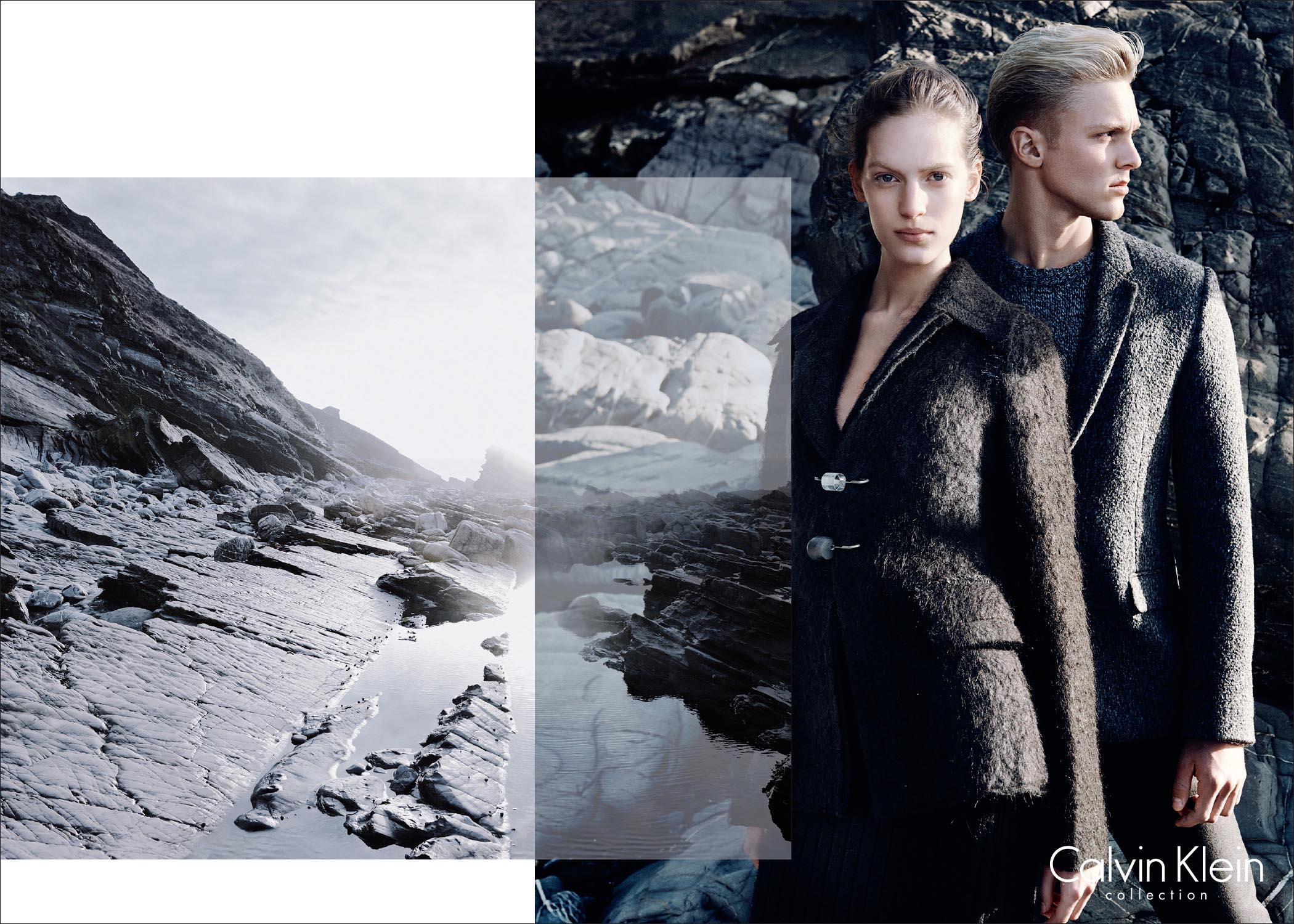 Tailored Focus–With a brand new cover for V Magazine under his belt, blond model Clark Bockelman gets ready to face the fall season with another Calvin Klein collaboration. Shot by David Sims, Clark is in fact the face of Calvin Klein Platinum and Calvin Klein Collection. Captured in the minimal atmosphere of a bare room for Calvin Klein Platinum, Clark is joined by model Vanessa Axente for a couple portrait where a tailored two-piece suit, paired with the basic charm of a black tee, creates Clark’s stylish look for the new season. For Calvin Klein Collection, Clark heads outdoors, showcasing creative director Italo Zuccheli’s masterful work with textiles.
