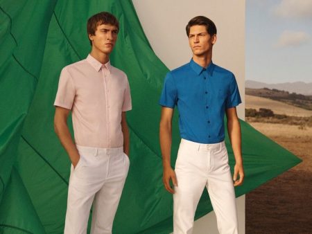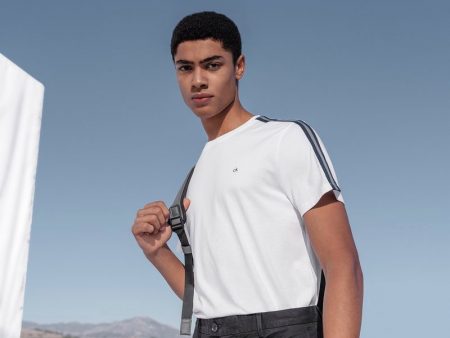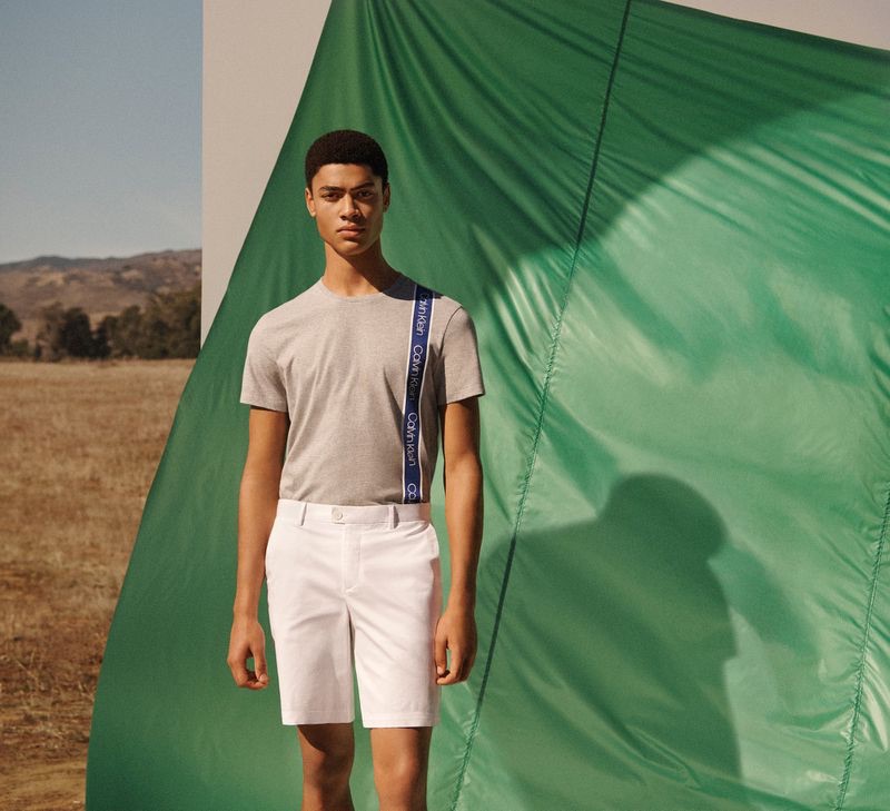 Calvin Klein takes to an open field for a stunning new campaign. The brand enlists photographer Lachlan Bailey to capture its spring-summer 2019 collection advertisement. Models Tim Dibble, Désiré Mia, and Justin Eric Martin come together for the outing. The models showcase Calvin Klein’s must-have sportswear for the season. George Cortina outfits the trio, highlighting Calvin Klein’s polo shirts, logo tees, suits, chinos, and more.