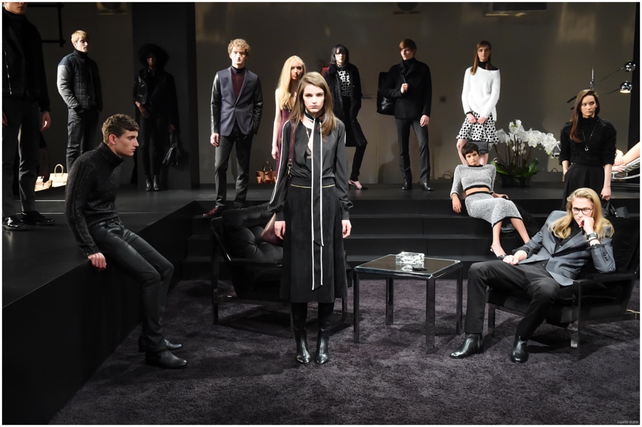 After a presentation during Milan Fashion Week, Calvin Klein returns to the Big Apple to once again share its diverse fall 2015 offerings. Calvin Klein Jeans and CK embrace a black color palette for fall, tackling a sleek take on modern essentials. From the modern appeal of its classic underwear briefs, updated with a black and white waistband to denim layered with fitted black staples such as the turtleneck, Calvin Klein has us attempting an early fall wish list.