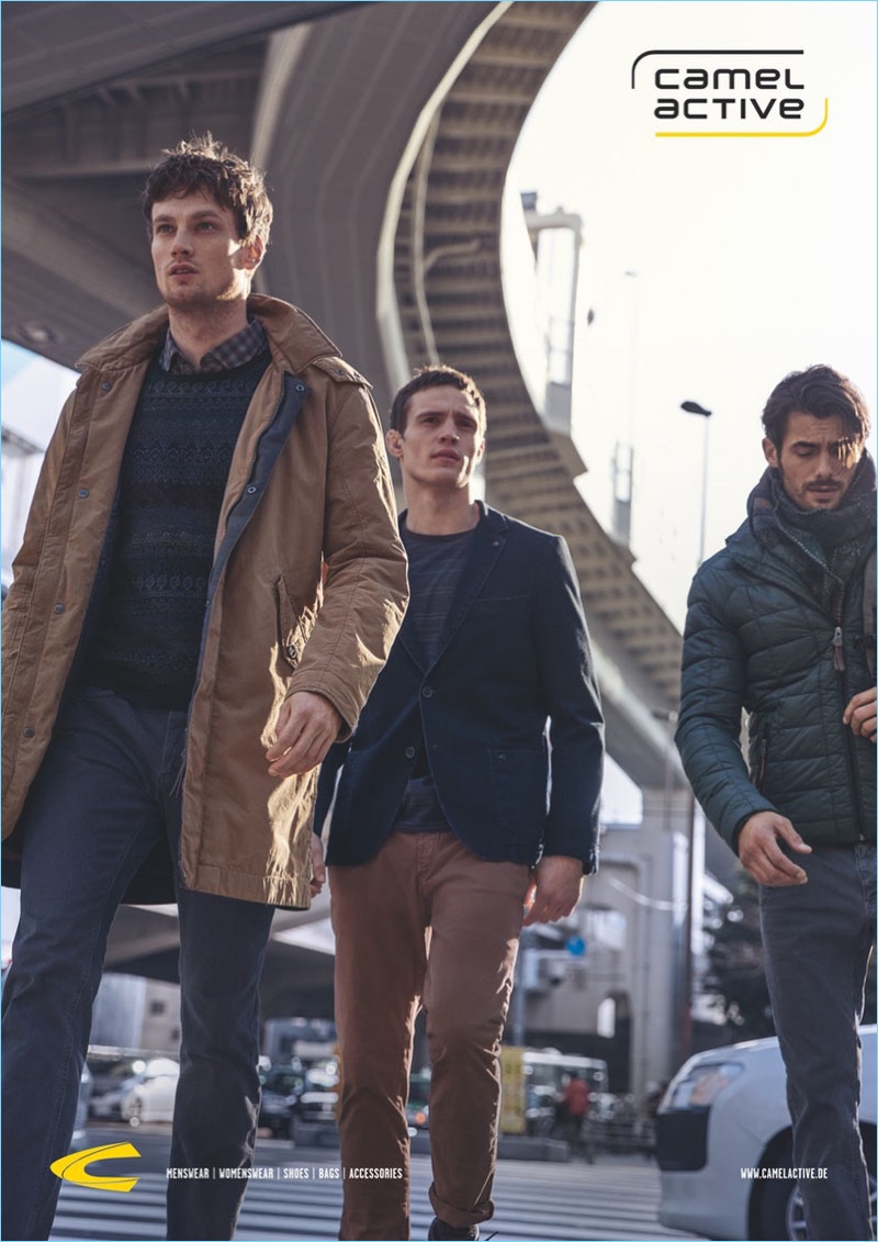 Known for its adventurous spirit, Camel Active travels to Tokyo for its fall-winter 2018 campaign. Models Jacey Elthalion, Julian Schneyder, and Max Bender star in the advertisement. Taking in new sights, the models capture the spirit of friendship, travel, and outdoor living. Embracing an active spirit, Jacey, Julian, and Max wear down outerwear, parkas, sweaters, scarves, and more.