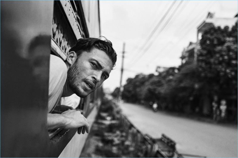 Riding the train, Andrey Zakharov appears in Camel Active's spring-summer 2018 campaign.Pin