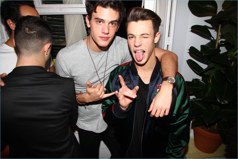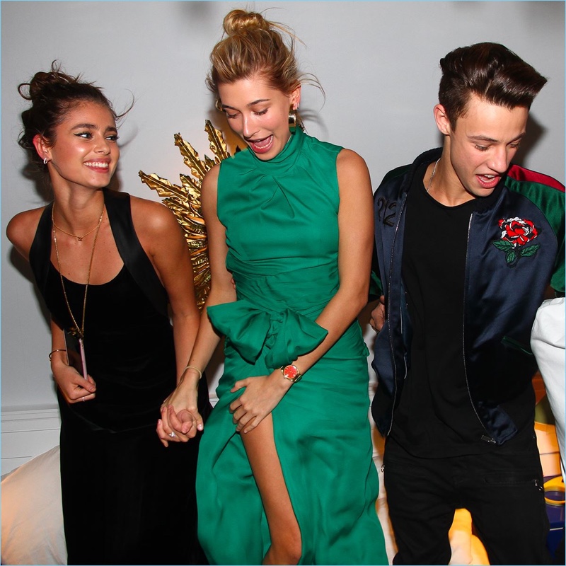 Cameron Dallas parties with his 212 VIP campaign co-stars, Taylor Hill and Hailey Baldwin.