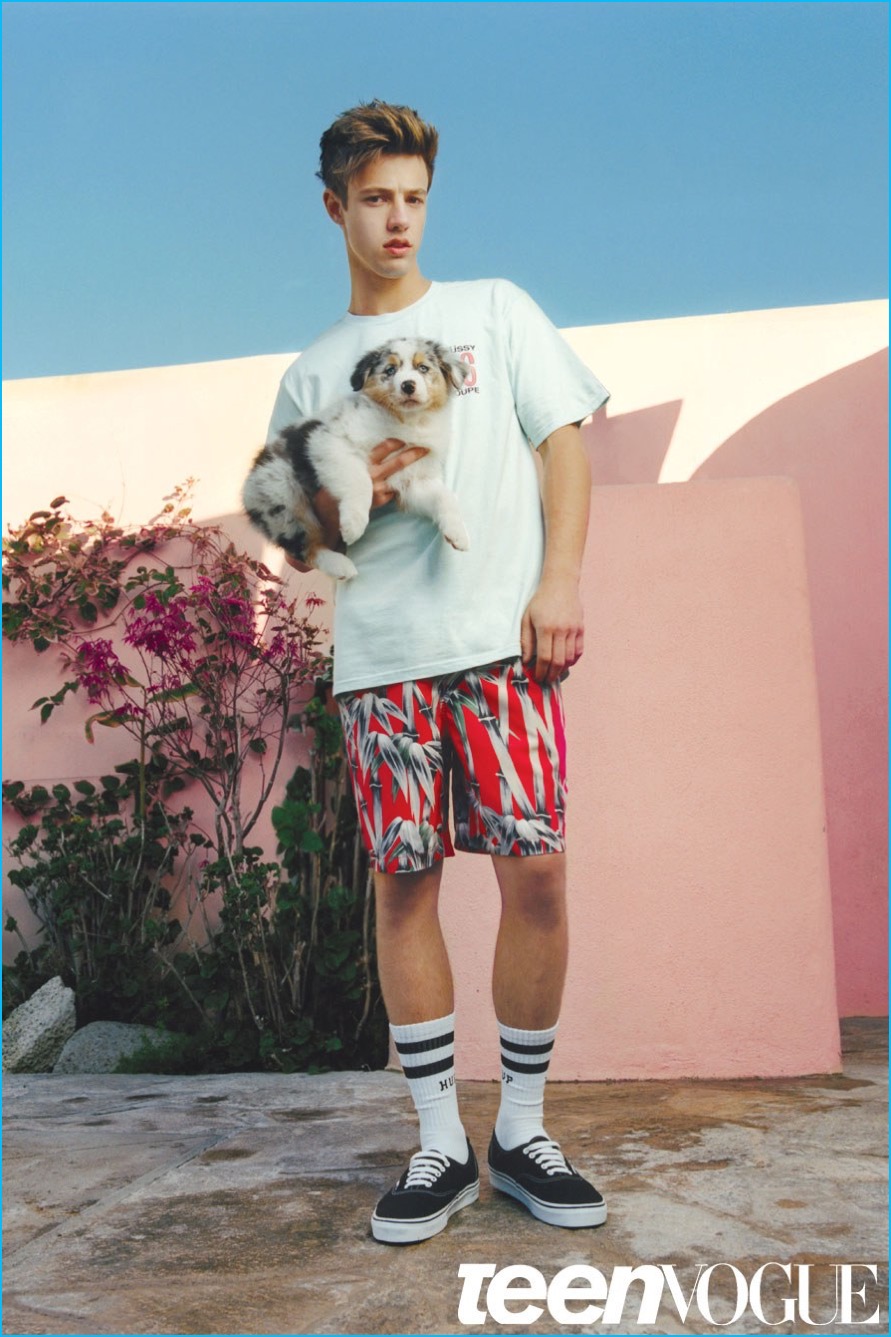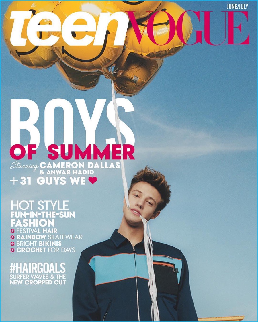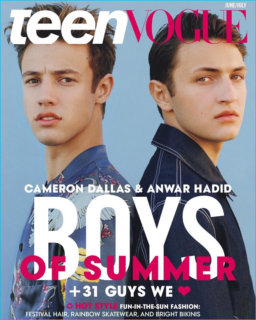 Teen Vogue runs with the theme of Boys of Summer, tapping Cameron Dallas and Anwar Hadid as its latest cover stars. While Cameron rose to fame as a Vine star, Anwar has famous siblings in top models Gigi and Bella Hadid. Photographed by Coco Capitán, Cameron and Anwar are brought together for Teen Vogue’s June/July issue. The boys don eclectic styles as they sport fashions pulled together by stylist Celestine Cooney.