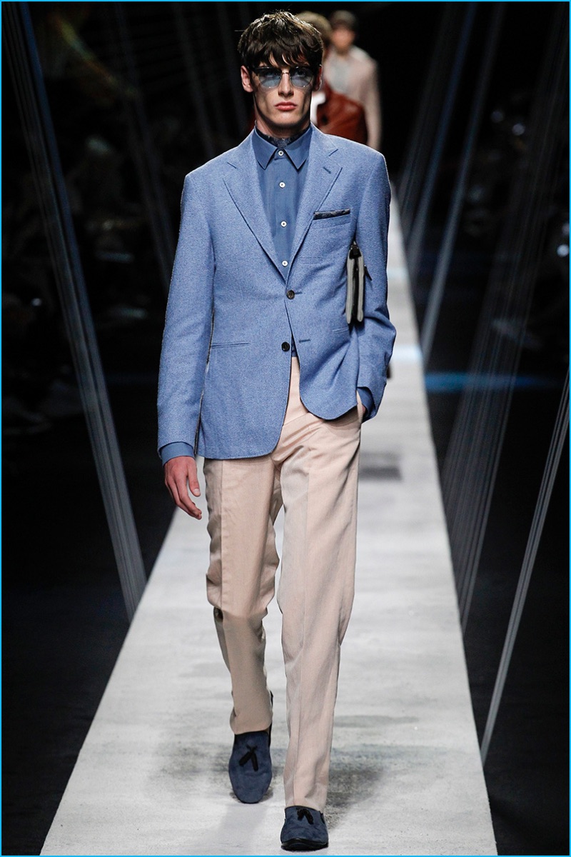 Canali reinforced its tailored heritage for spring-summer 2017. Approaching the season with qualities of the sophisticated gentleman, the Italian label looked to capture a color palette that amplified the convergence of Earth and sky. As a result, soft blues, neutrals and rich earth tones dressed an elegant lineup.