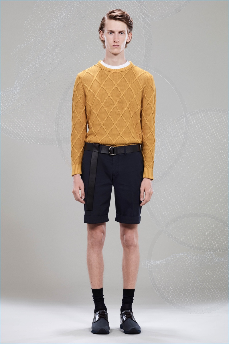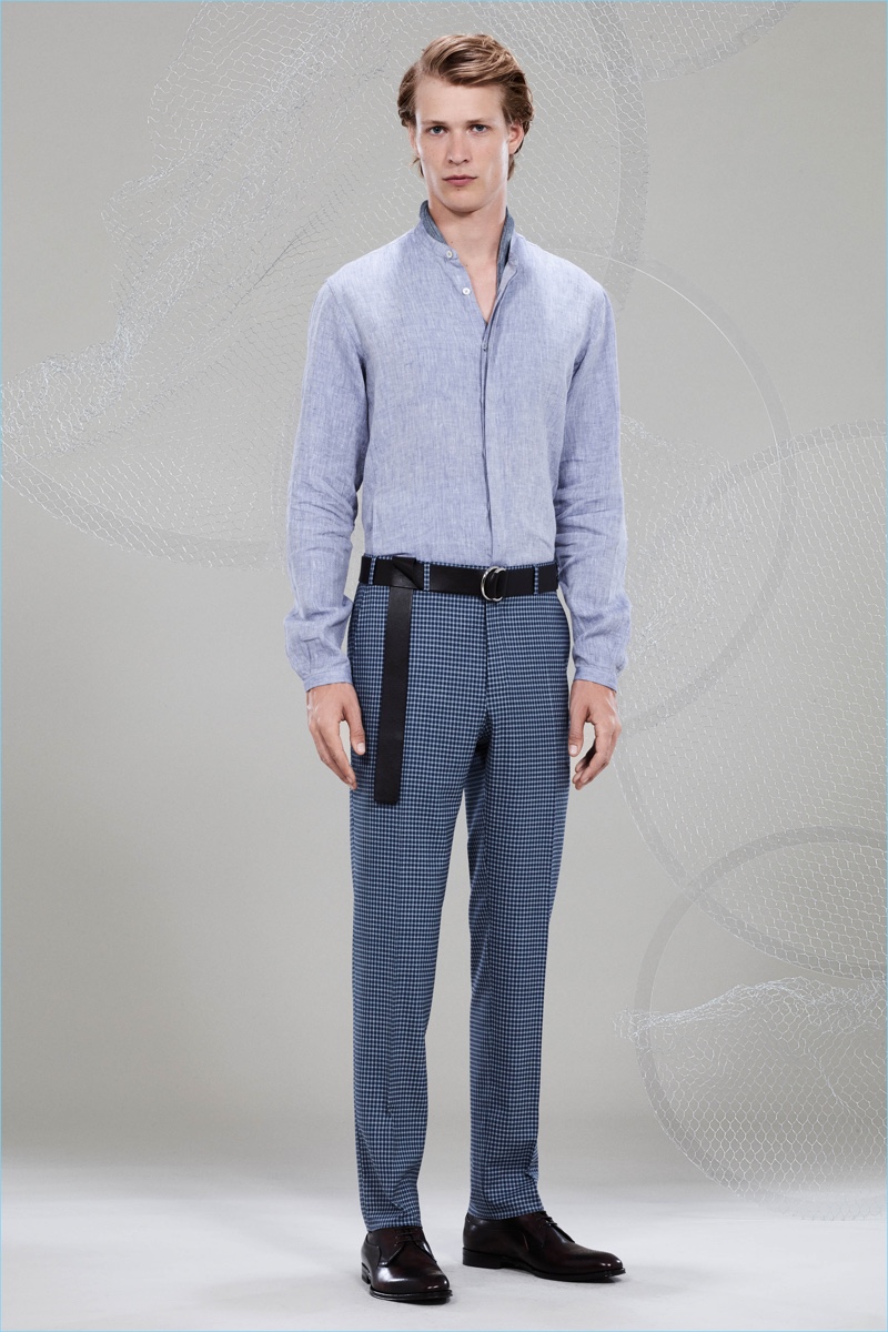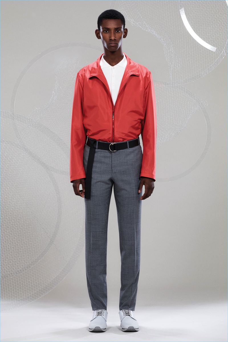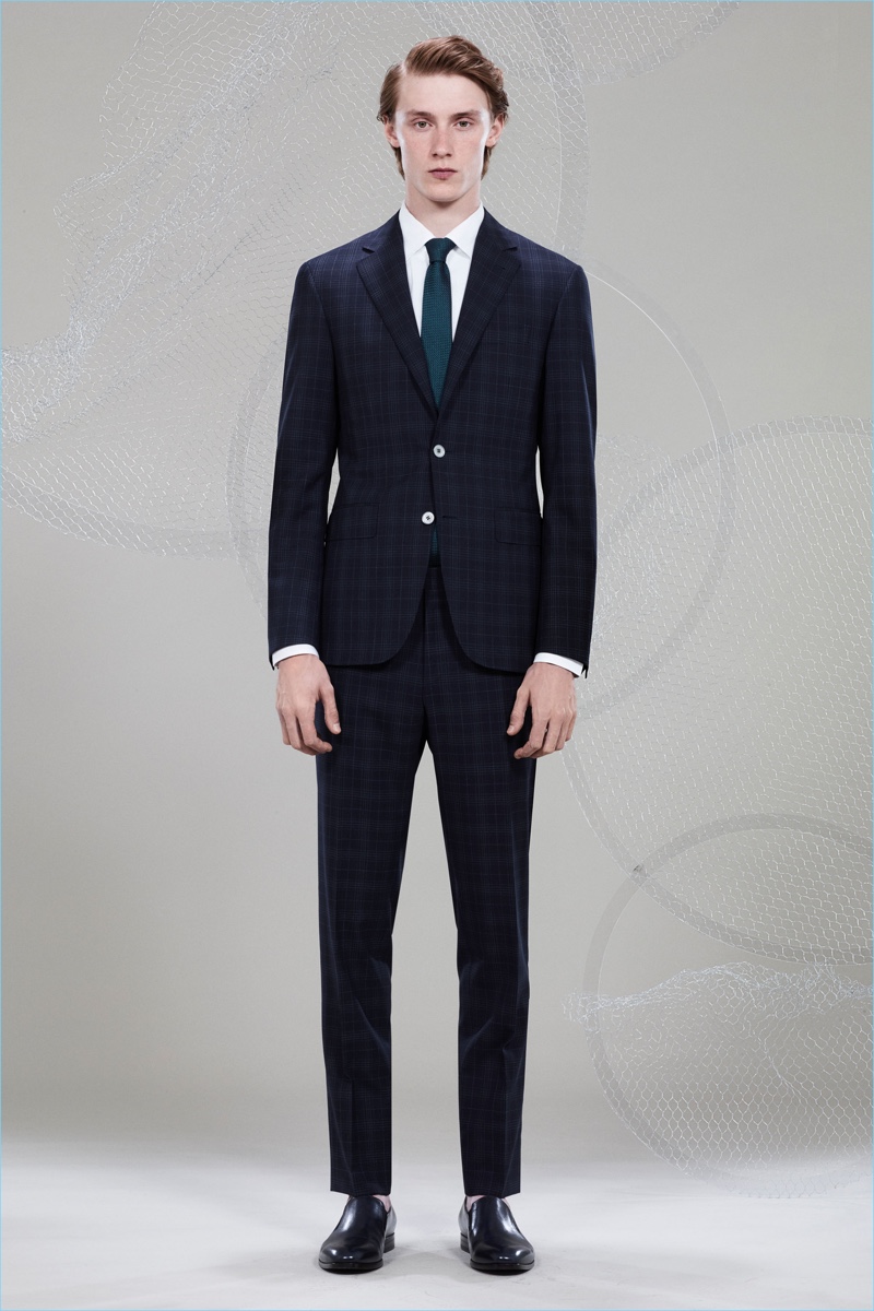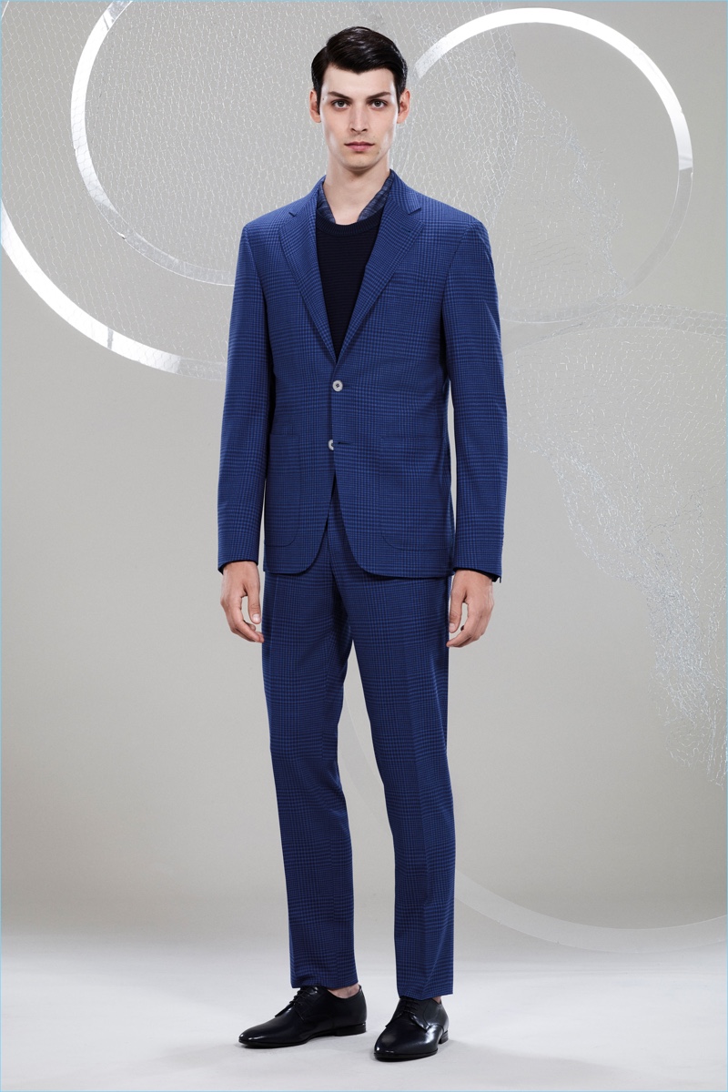 Canali keeps The Sophisticated Traveler in mind for spring-summer 2018. The Italian brand imagines its stylish man as traveling by train. Whether on the road for business or pleasure, Canali’s man adheres to smart style codes. Wearing narrow trousers, lean coats, light knitwear, and more, he is as comfortable as he is sleek. Canali also debuts its innovative fabric, Impeccabile 2.0. The miracle innovation is waterproof, breathable, and evens out creases with natural body heat.