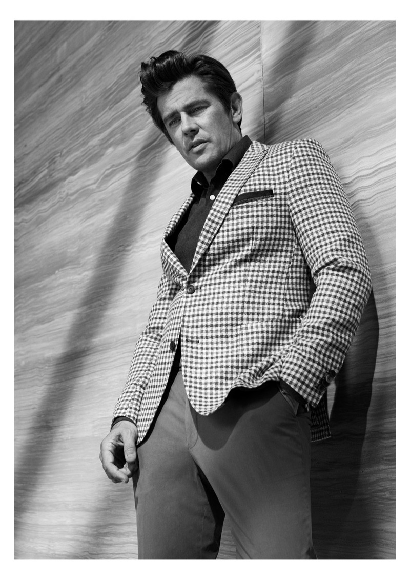Werner Schreyer easily inspires as the face of Carl Gross’ spring-summer 2019 collection. The top model connects with the brand to not only showcase its mainline, but elegant pieces from its Black Line range as well. Posing against a wood-panel print set, Werner dons Carl Gross’ sartorial wardrobe, which includes sharp suits and smart sportswear essentials such as the car coat. The label delivers plenty of classic menswear prints, alternating between striking suiting numbers and dashing separates.
