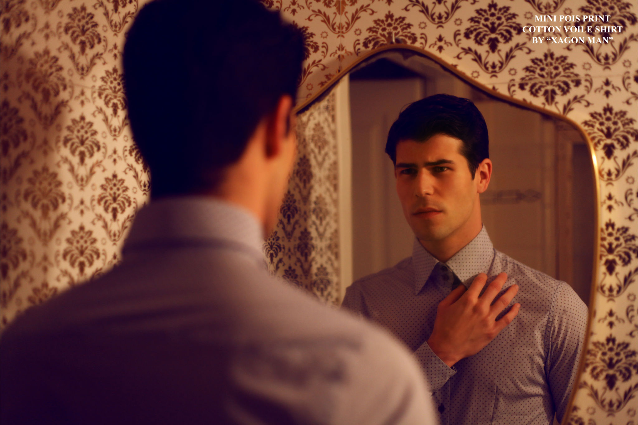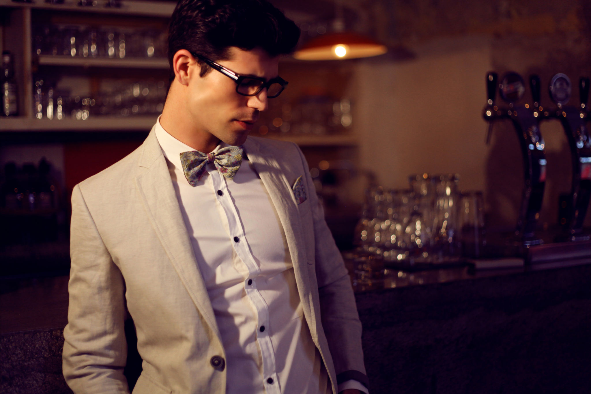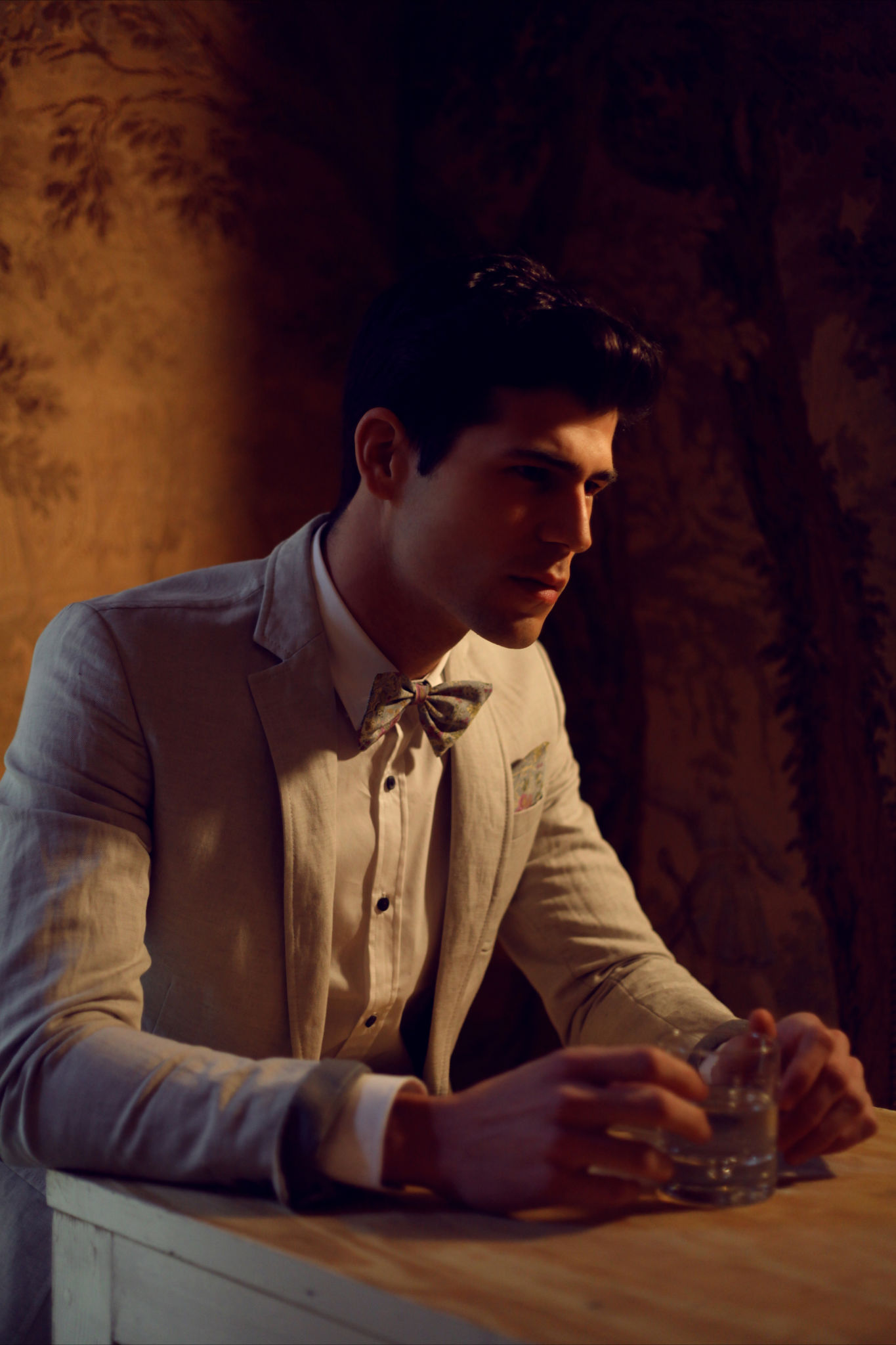 Carlos wears lightweight linen blend jacket Xagon Man, light popeline shirt Antony Morato, silk bow tie and pocket square exclusively handmade for the stylist. / Title image Carlos wears light popeline shirt Antony Morato.