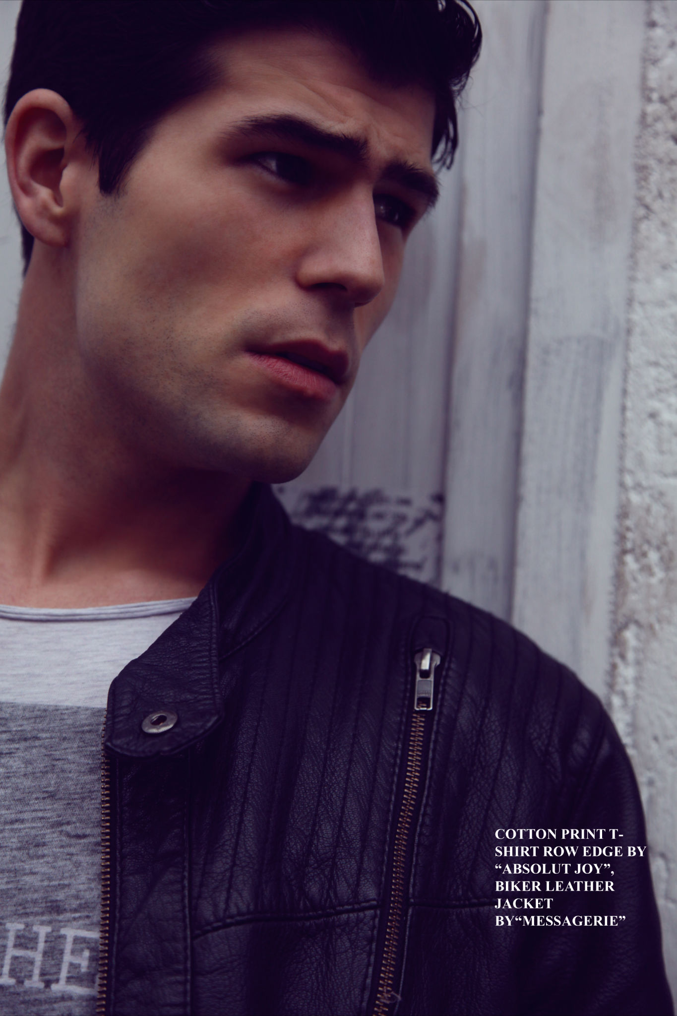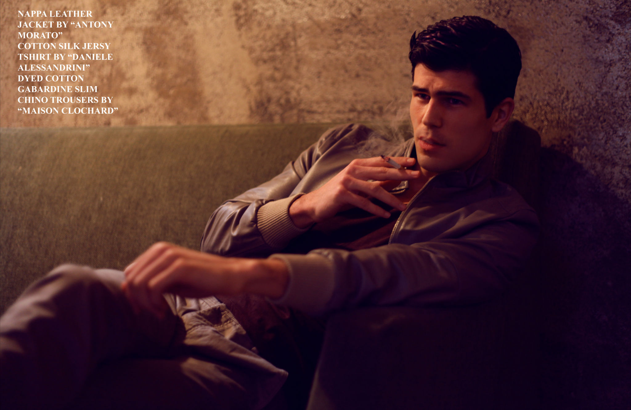 Carlos wears nappa leather jacket Antony Morato, cotton silk jersey T-shirt Daniele Alessandrini.