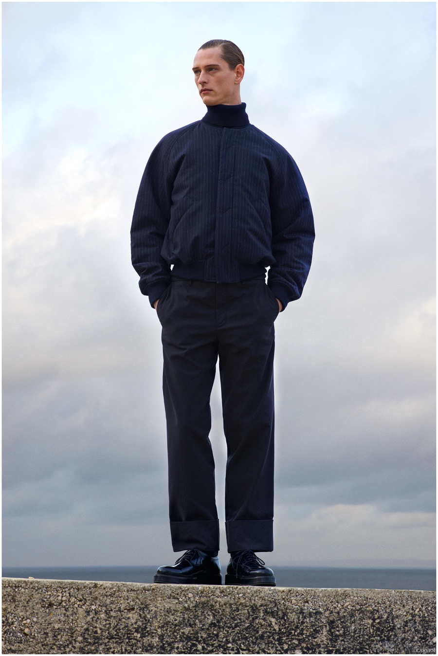 The mid 1980s come into play for Guillaume Henry’s fall-winter 2015 menswear collection for French fashion brand Carven. Interested in the dramatic silhouettes that mirror an urban neo-romanticism, Henry serves up a line, rich in coats and jackets. Executed with generous volumes and relaxed tailoring, outerwear is the star of the season as it’s paired with slim-cut trousers, ribbed turtlenecks and smart shirts.