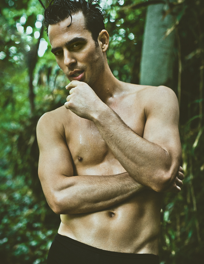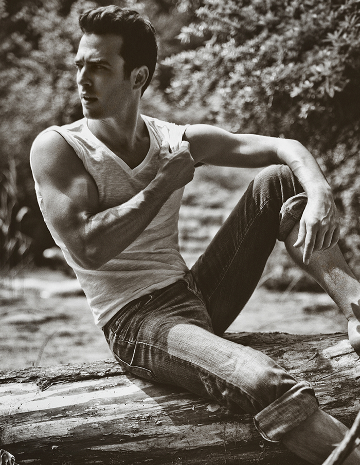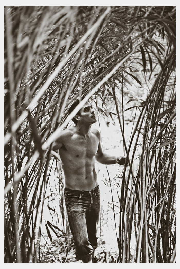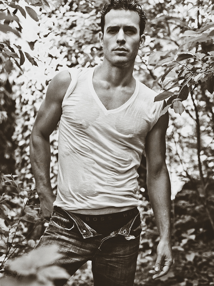 A Moment’s Getaway–Soul Artist Management model Michael Altman links up with photographer Casey Vange for a new photo series to update his book. Posing for quite the images, Michael invites us into his world. Appearing in both color and black & white images, Michael is relaxed in a black swimsuit as well as a casual t-shirt and pair of jeans.