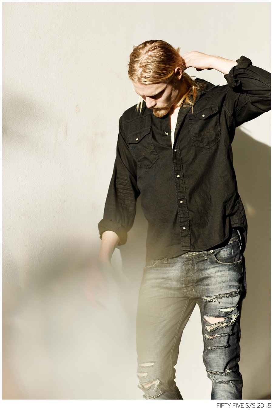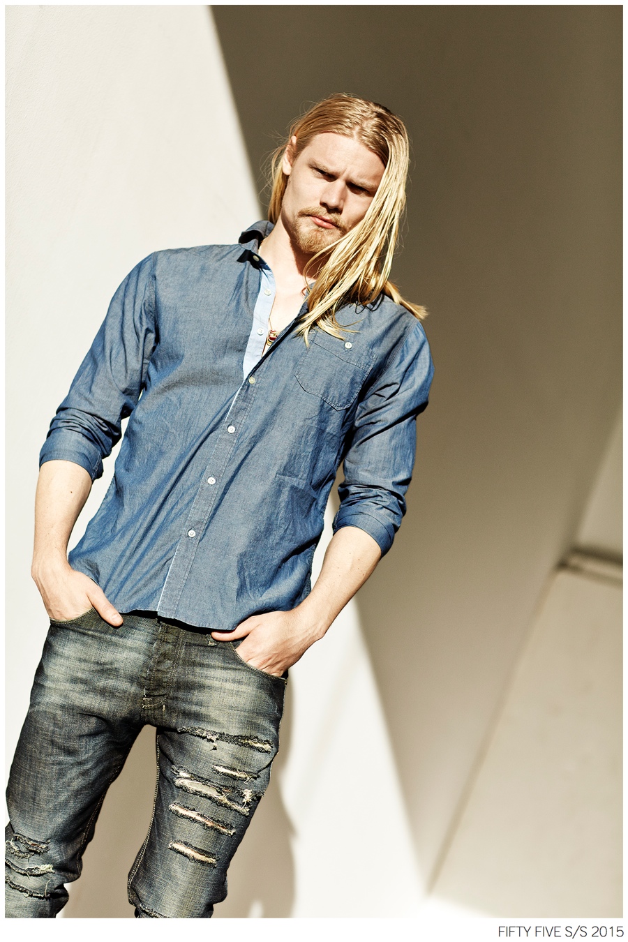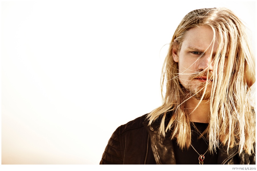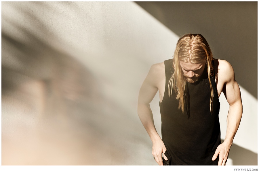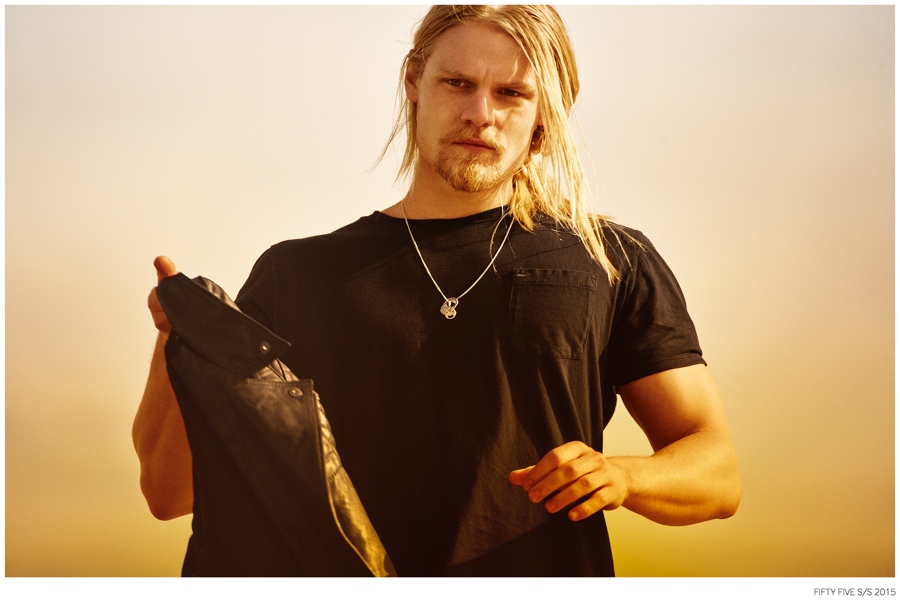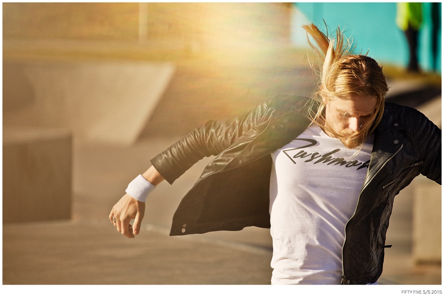 Denim Outing-Argentinean denim label Fifty Five taps model Caspar Peteus to front its spring/summer 2015 campaign and lookbook. Photographed by Pat Battellini, Caspar heads outdoors, displaying an active attitude. Dressed in spring essentials, Caspar’s wardrobe consists of Fifty Five’s relaxed t-shirts, leather jackets, slim-fit distressed denim jeans and classic staples such as the denim shirt and jacket.