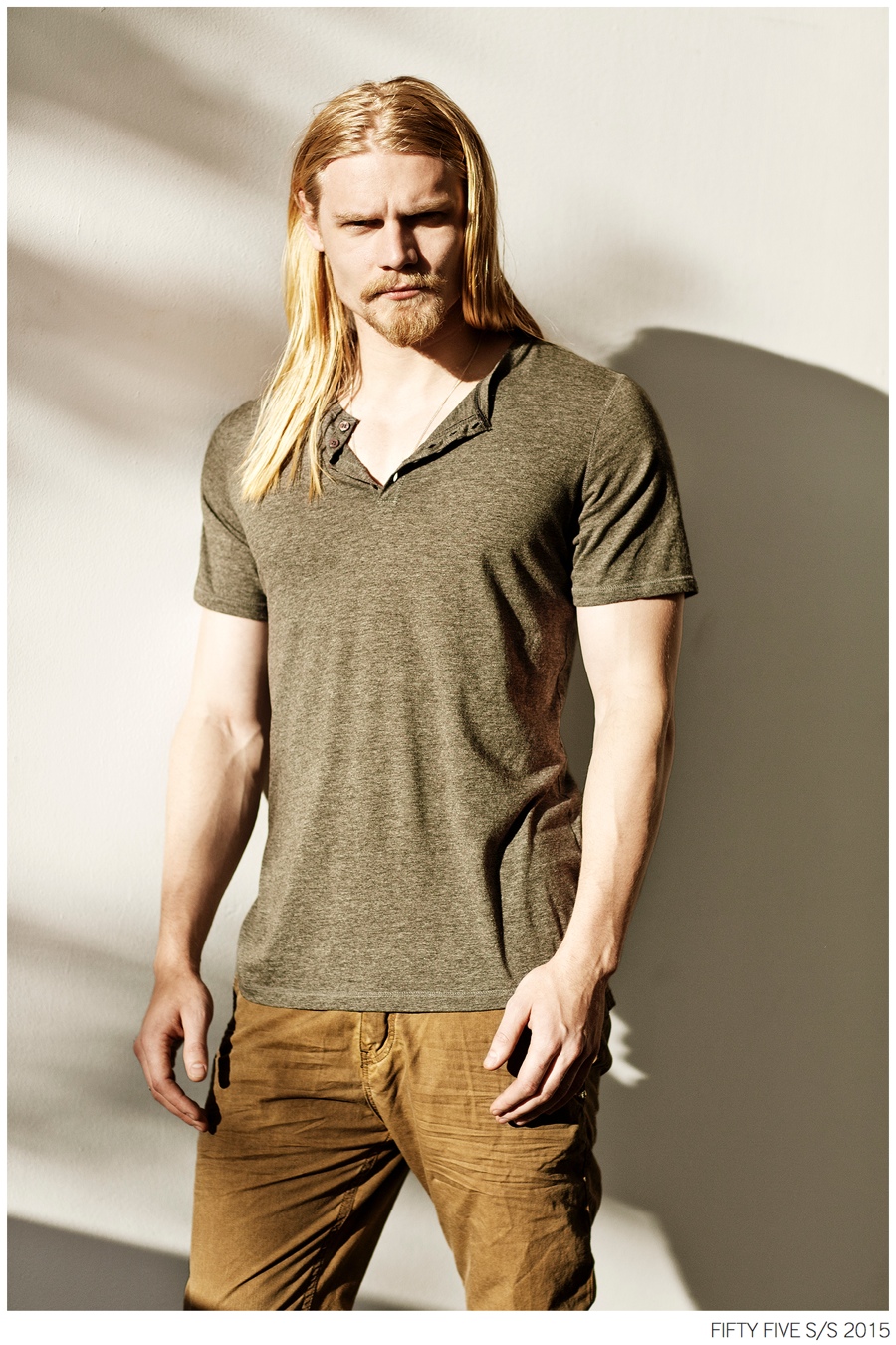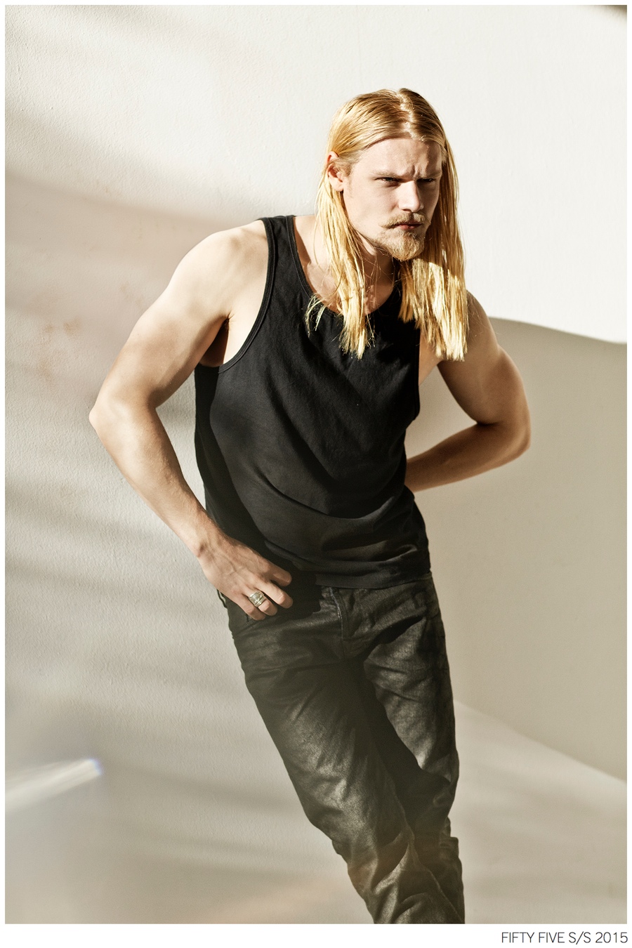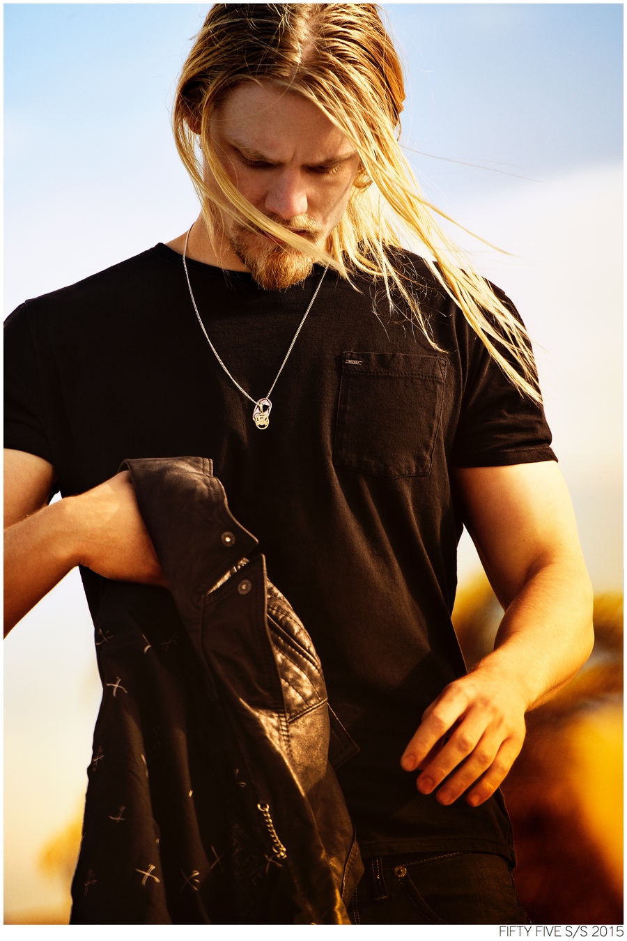 Denim Outing-Argentinean denim label Fifty Five taps model Caspar Peteus to front its spring/summer 2015 campaign and lookbook. Photographed by Pat Battellini, Caspar heads outdoors, displaying an active attitude. Dressed in spring essentials, Caspar’s wardrobe consists of Fifty Five’s relaxed t-shirts, leather jackets, slim-fit distressed denim jeans and classic staples such as the denim shirt and jacket.