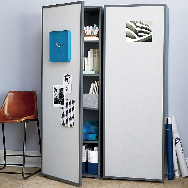 The designer Chester Ong says about one of the collection’s highlights, a cache storage cabinet: “The perfect space-saving organizer stores everything from books to bourbon in slim concealed shelves that pull out on a set of rolling casters.” Browse CB2’s selection of products that help save space at CB2.com.