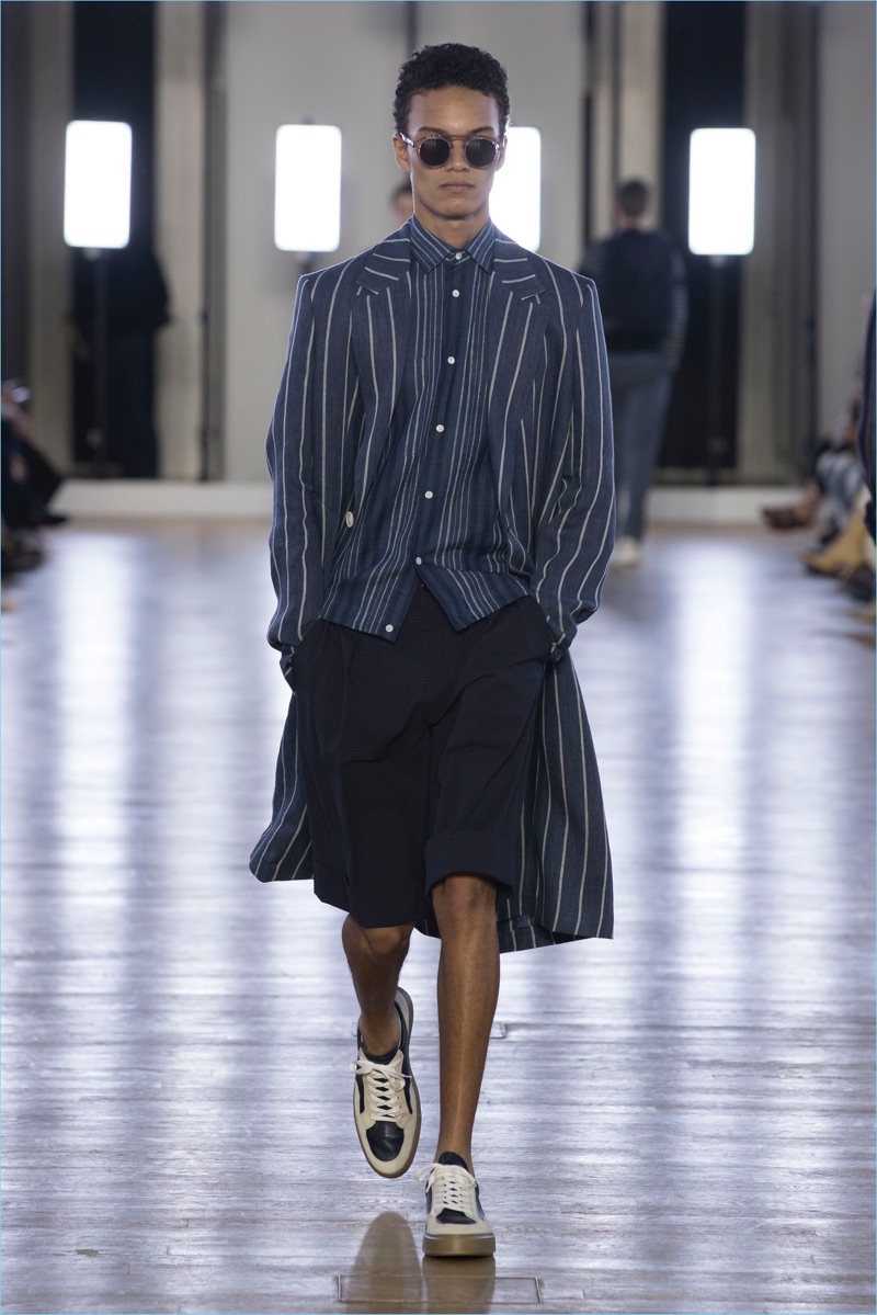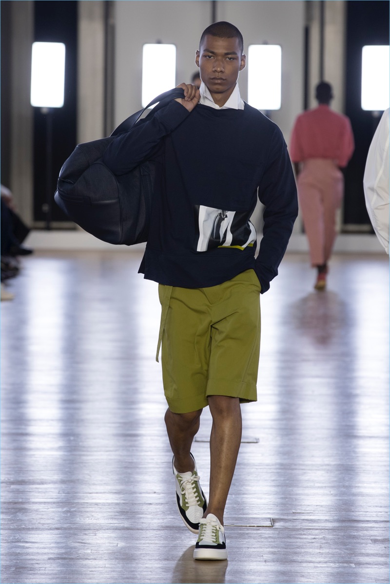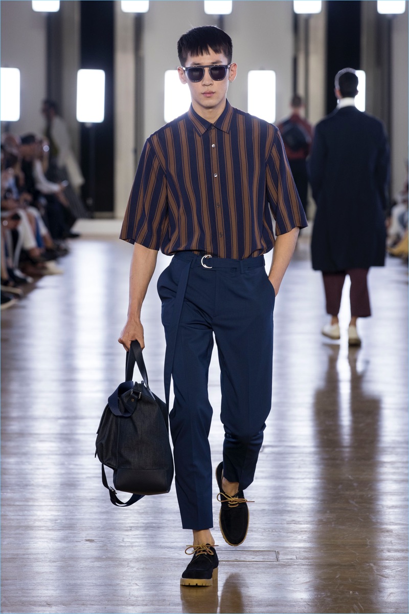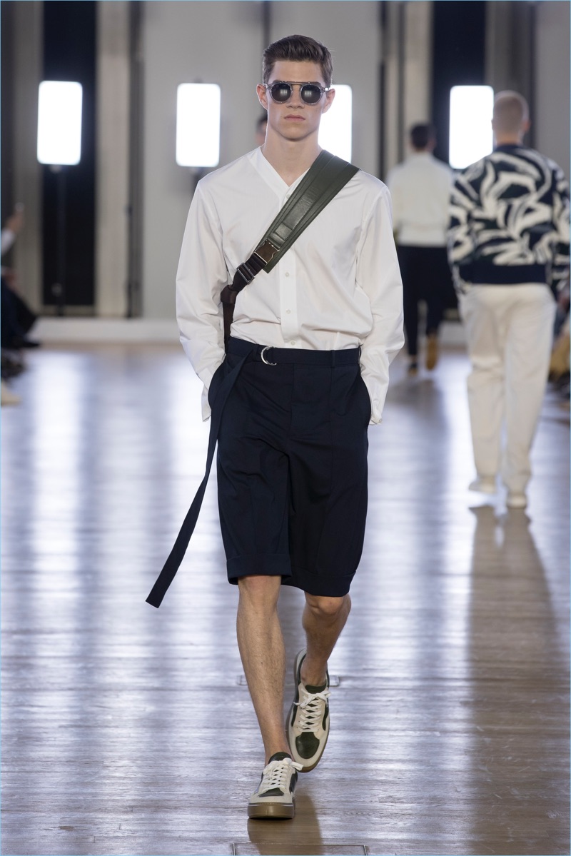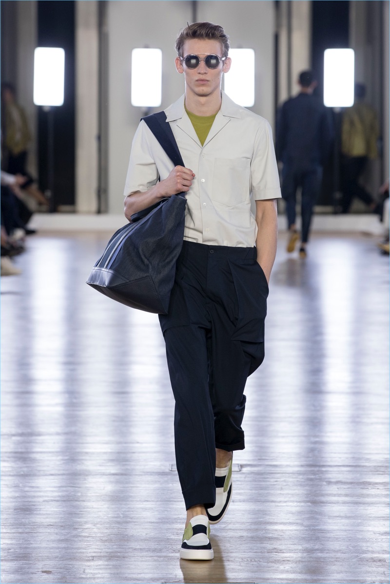 Eighties television classic Miami Vice is in the spotlight once more as Cerruti 1881 unveils its spring-summer 2018 collection. Designer Jason Basmajian revisits the iconic looks designed by Nino Cerruti for the show in 1984. Here, relaxed tailoring comes together with a light color palette of cream with splashes of lime and ocean. Cerruti’s man of style is a sleek vision as he mixes and matches separates with an effortless hand. The collection turns out an irresistible selection of graphic knitwear, patterned shirts, oversize coats, printed shorts, and more.