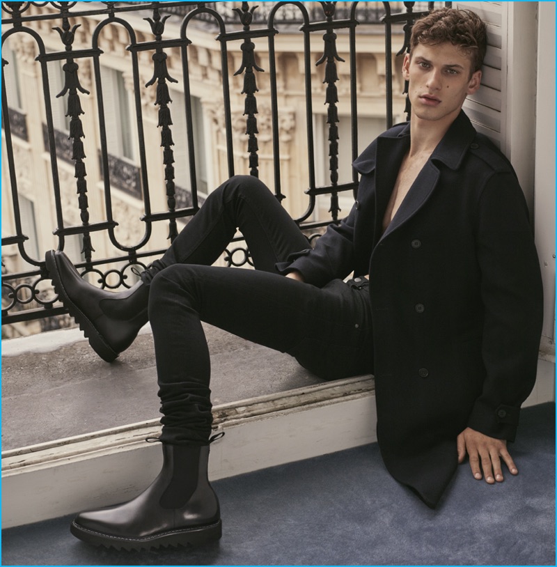 Following multiple seasons with Justice Joslin as its male star, Cesare Paciotti goes in a new direction for its fall-winter 2016 campaign. The luxury brand taps model David Trulik to front its advertisement, connecting with photography duo Sean & Seng. Photographed alongside Mathilde Brandi, David dons trendy shoes from Cesare Paciotti’s mainline. David also fronts the label’s debut total-look capsule collection with its Wild Dagger range. Rock inspired apparel joins choice leather footwear for the occasion.