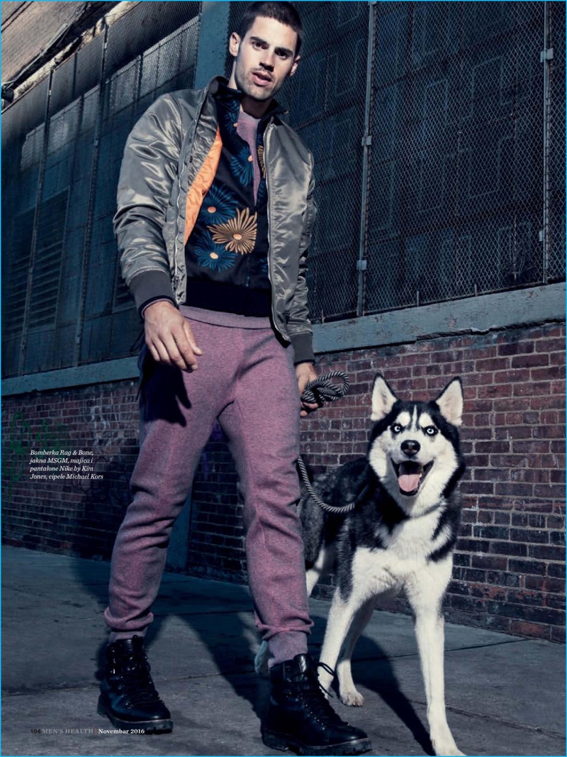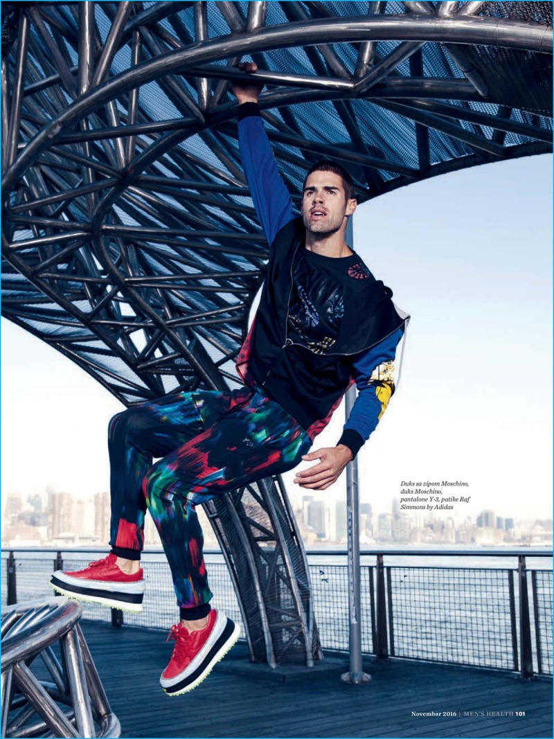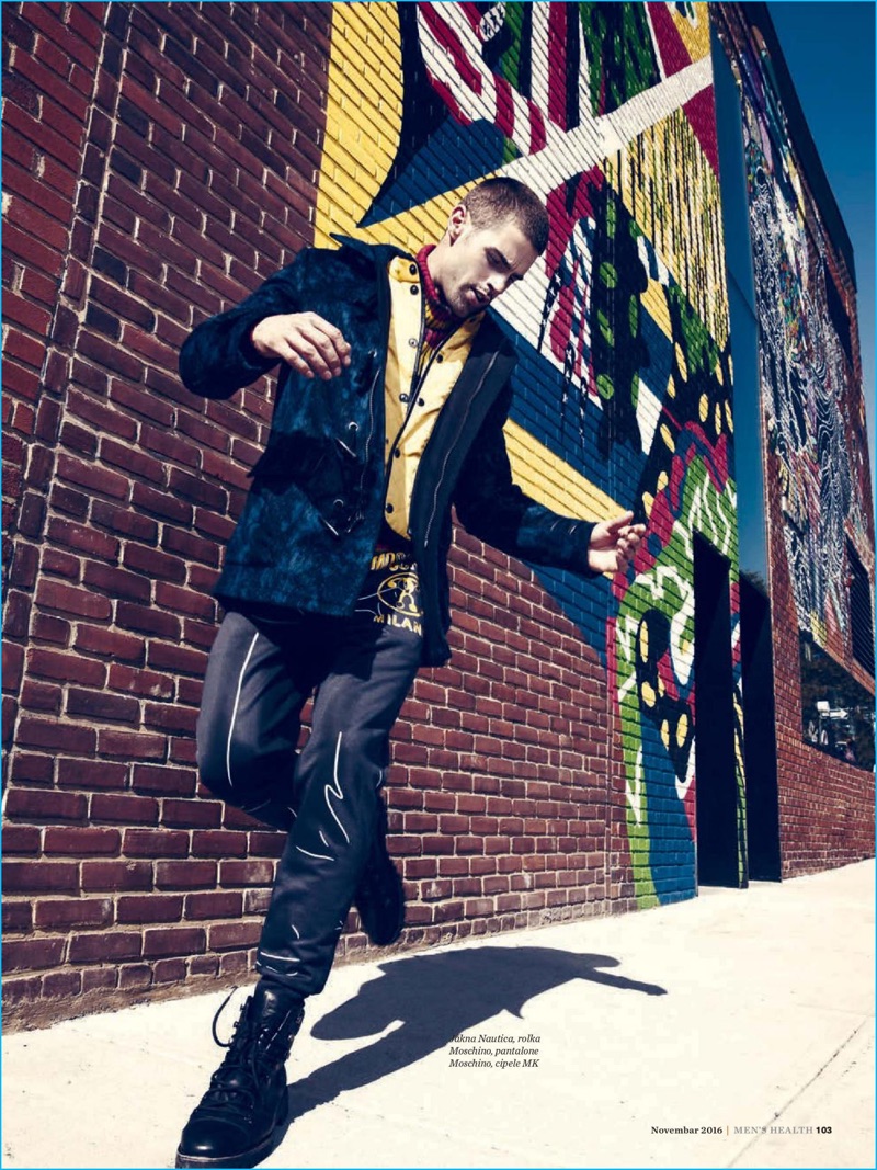 Chad White delivers a bright smile as he shows off his six-pack for the November 2016 cover of Men’s Health Serbia. Photographer Sinem Yazici captures the American model for the story. Taking to the streets of Brooklyn, New York, Chad dons a wardrobe of eclectic season fashions. Marrying a mix of varied labels, stylist Charlie Ward pulls together the likes of Moschino, T by Alexander Wang, and Dries Van Noten.
