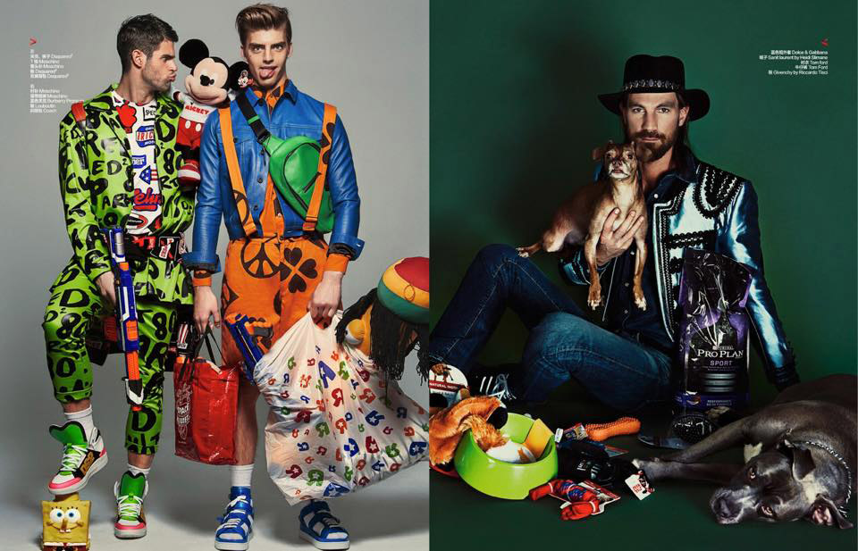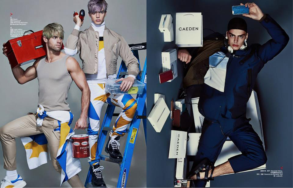 After a trip to the beach with a stylish take on lifeguard duty, photographer Shxpir envisions a shopper’s paradise. Collaborating with stylist Jonathan Mahaut for a Harper’s Bazaar Man China story, Shxpir shoots models Chad White, Daan van der Deen and Henrik Fallenius. Decked out in the season’s boldest, loudest fashions, the trio mesmerizes in endless layers of products.