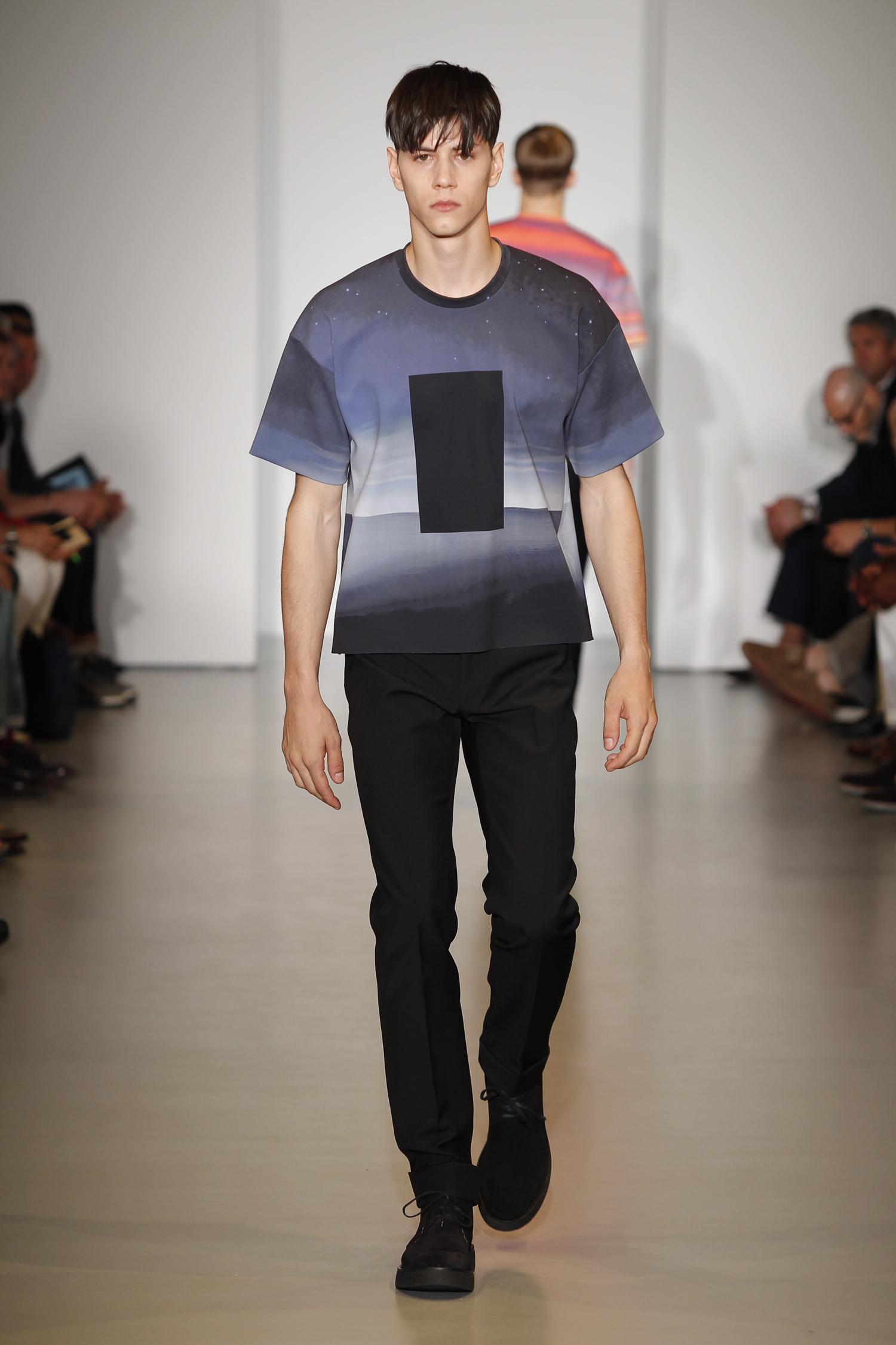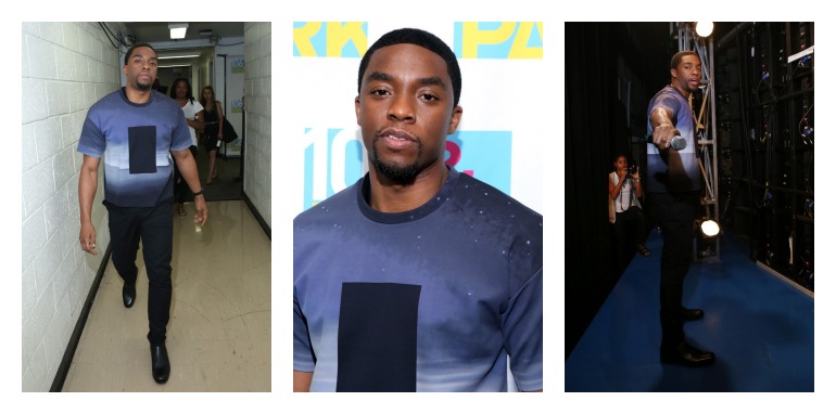 Chadwick Boseman in Calvin Klein Collection-Stopping by BET television show ‘106 & Park’ this week, actor Chadwick Boseman was in New York to promote James Brown biopic ‘Get on Up’. For the special occasion, Chadwick kept it casual but cool in a night/black photo print tech bonded nylon crew neck t-shirt and black bonded wool pants from the spring/summer 2014 range of Calvin Klein Collection creative director Italo Zucchelli.