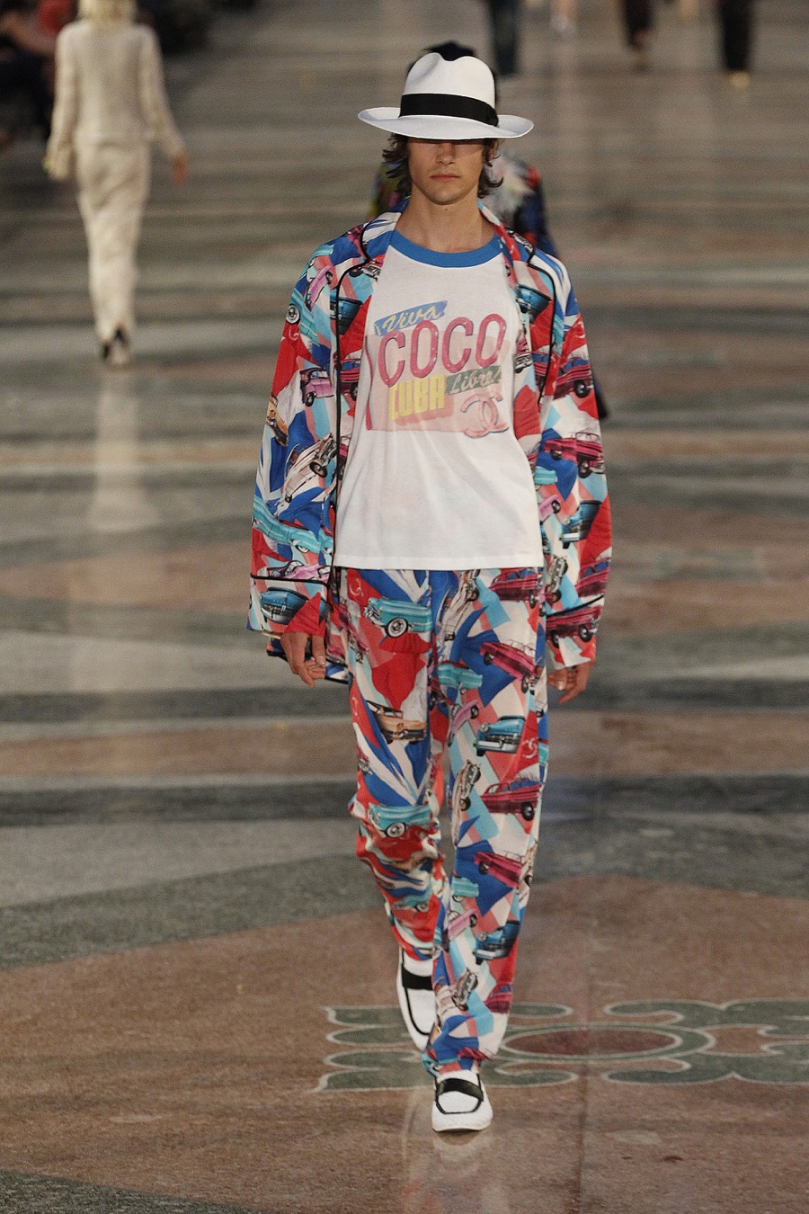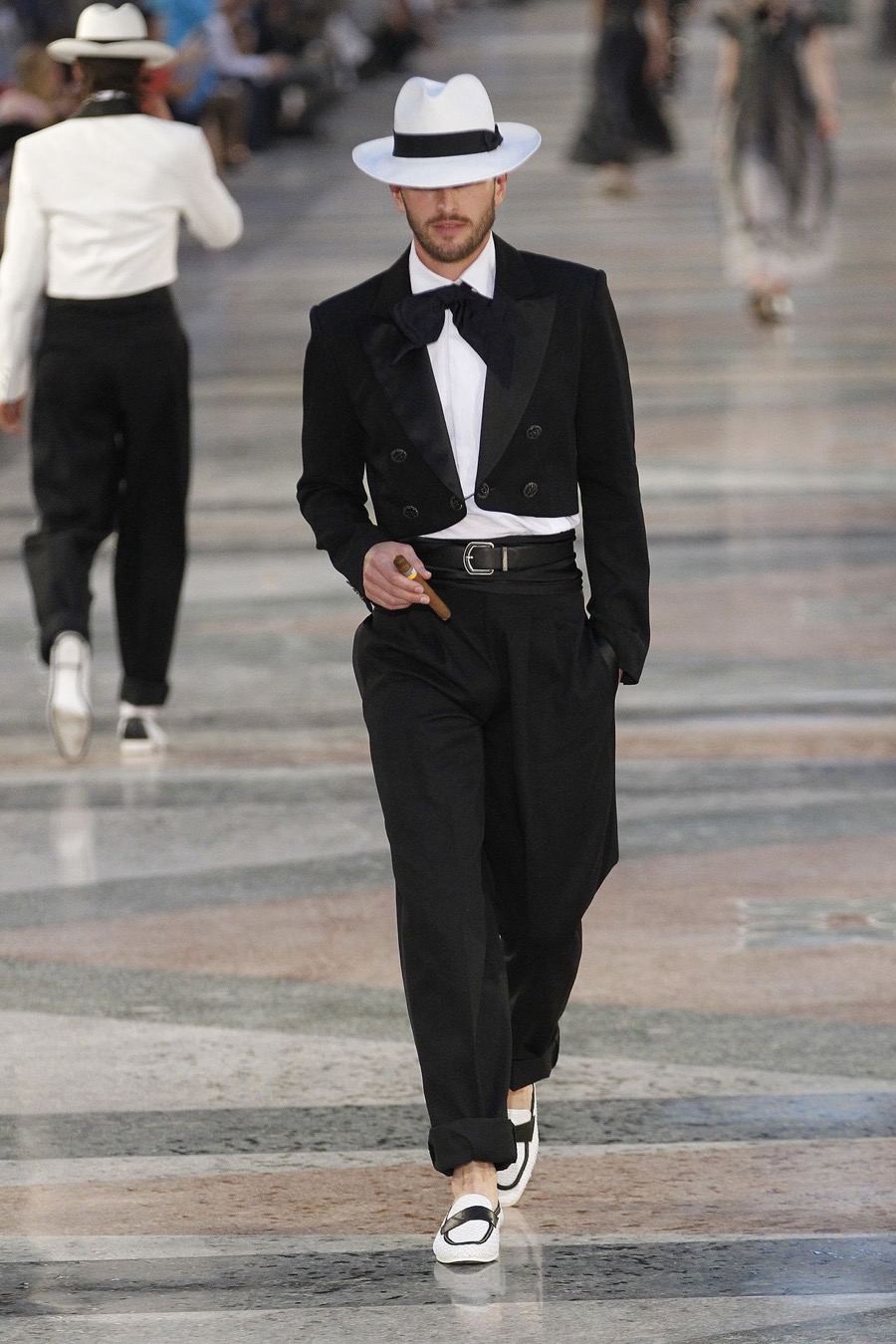 Chanel channels Cuba’s golden age with a tailored look that features a cropped tuxedo jacket and panama hat.