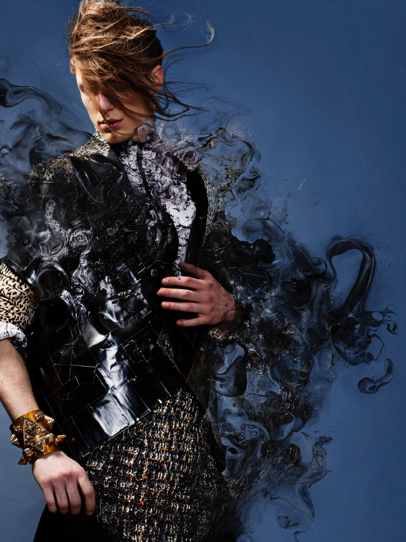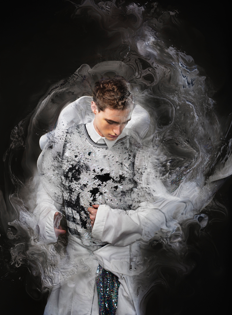 Chaos Matter–Following his SSAW cover, model Tommaso de Benedictis takes to the pages of Elle Man Vietnam with a new story lensed by photographer Bryan Huynh (MBK London). Styled by Tomas C. Toth for the magazine’s June issue, Tommaso models intricate designs from the likes of Givenchy with the images later being manipulated for a colorful explosion. / Hair by Anna Chapman (Trevor Sorbie). Makeup by Emma Miles (Emma Davies Agency). Casting and production by David Wilton. Photo assistance by Tristan Claroux. Styling assistance by Hermes Cevera. Hair assistance by Tina Faith.