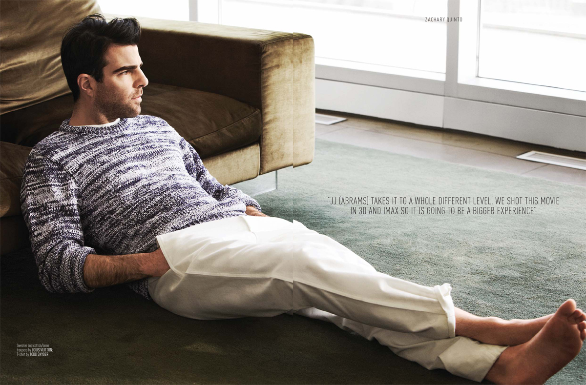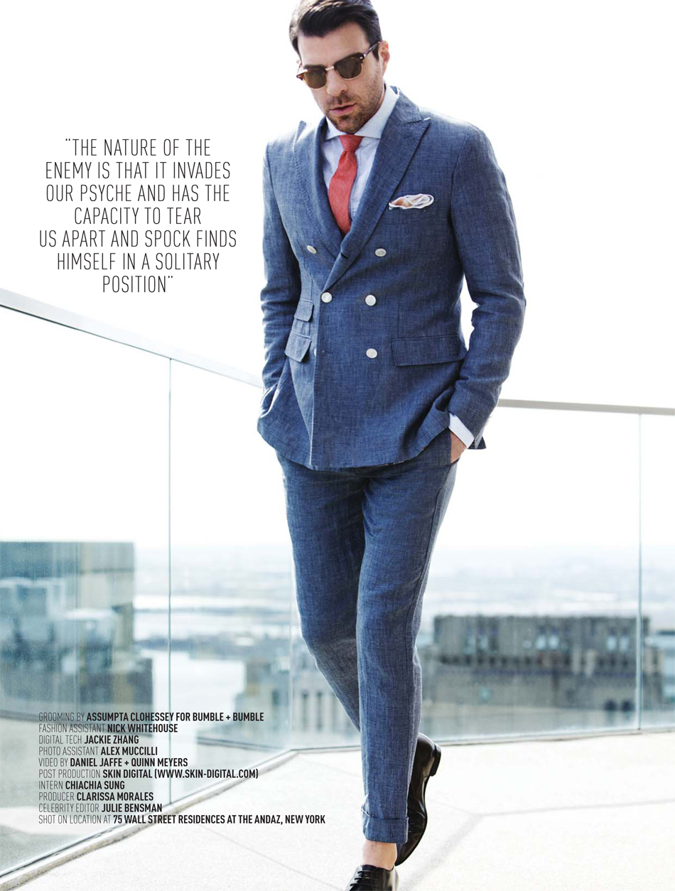 City Style–After gracing August Man Malaysia’s iPad edition covers, actor Zachary Quinto reunites with photographer Chiun-Kai Shih and stylist Marcus Teo to appear in the magazine’s cover story. Captured in New York City in a bright and luminous day, the Star Trek actor showcases an array of styles where formal dressing blends with more casual and soft suggestions, like cashmere sweaters or basic tees. Lounging in a modern flat, or posing surrounded by glasses that reflect his silhouette and New York City’s landscape, Zachary lends his figure for a series of images that accompany a revealing interview. / Creative direction by Melvin Chan. Photography Assistance by Alex Muccilli. Styling assistance by Nick Whitehouse. Grooming by Assumpta Clohessey. Post production by Skin Digital Retouching.