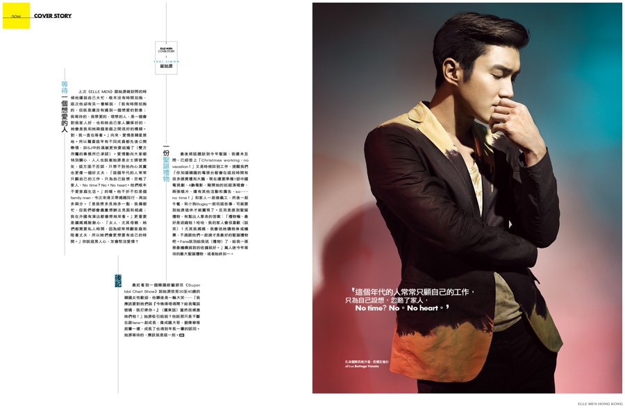 Choi Si-won Covers Elle Men Hong Kong-A member of South Korean boy band Super Junior and an actor, Choi Si-won covers the December 2014 edition of Elle Men Hong Kong. Photographed by CK (Secret 9 Production), Choi hits the studio for a luxurious fashion narrative orchestrated by Elle Men fashion director Samuel Lee. Pictured in contemplative poses, Choi wears strong looks from Bottega Veneta, Hermes, Givenchy, Alfred Dunhill and more. / Makeup by Arris Law. Hair by Sev Tsang.