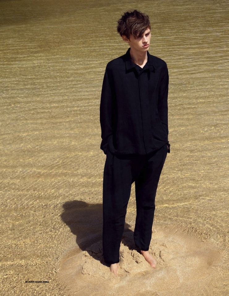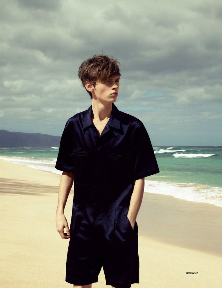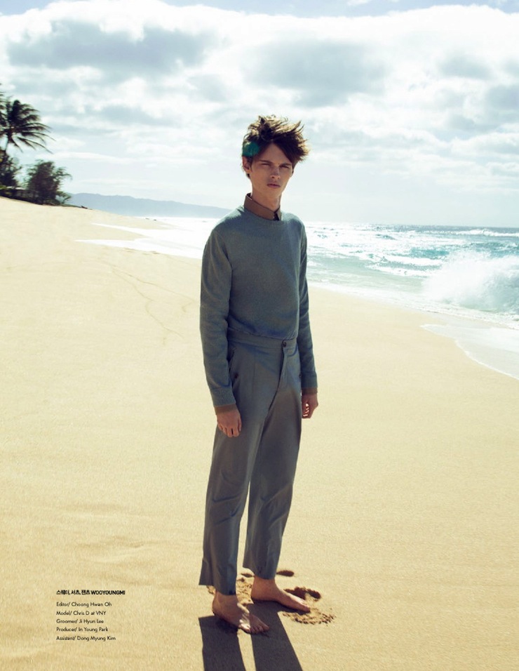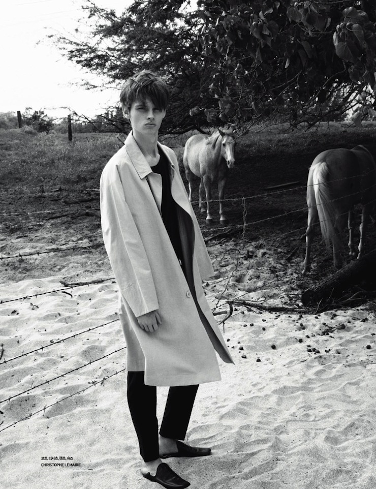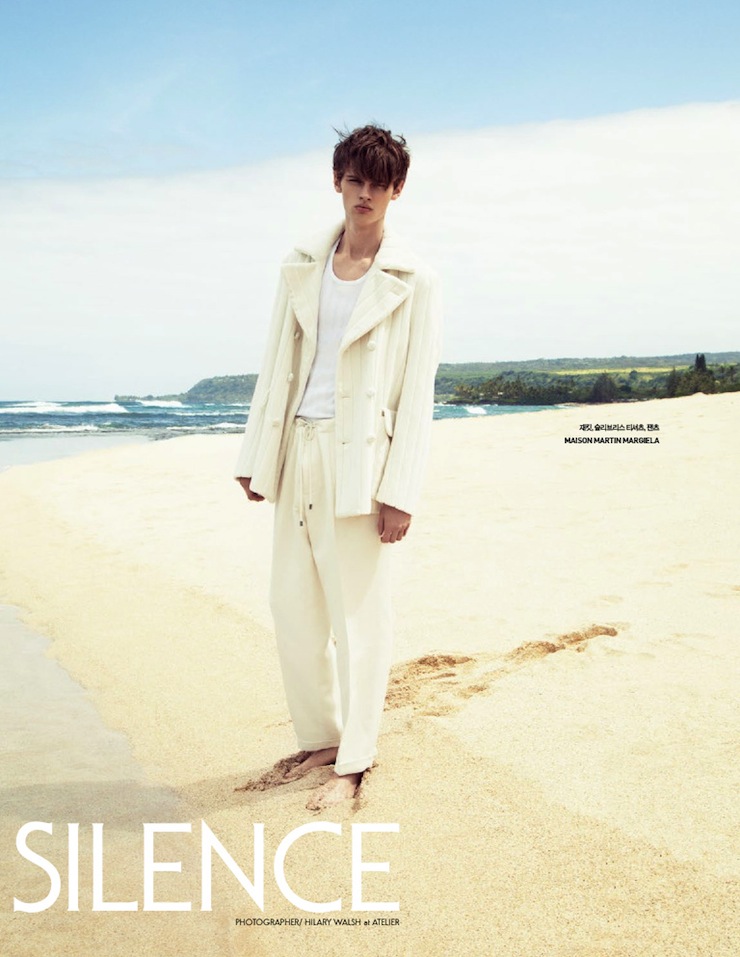 It’s, Oh So Quiet-Chris Davis graces the pages of GQ Style Korea’s latest issue, landing on a deserted beach. Captured in a natural daylight by Hilary Walsh (Atelier Management), the VNY model wears for the fashion story designs from the collections of Maison Martin Margiela, Acne, Kris Van Assche amongst others, styled by Choong Hwan Oh, who plays with the more classic shades of a man’s wardrobe, like black, white, midnight blue and grey, defining a clean aesthetic, made of linear silhouettes and basic garments. / Grooming by Ji Hyun Lee.