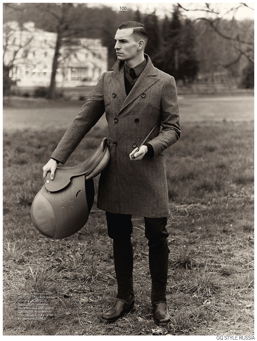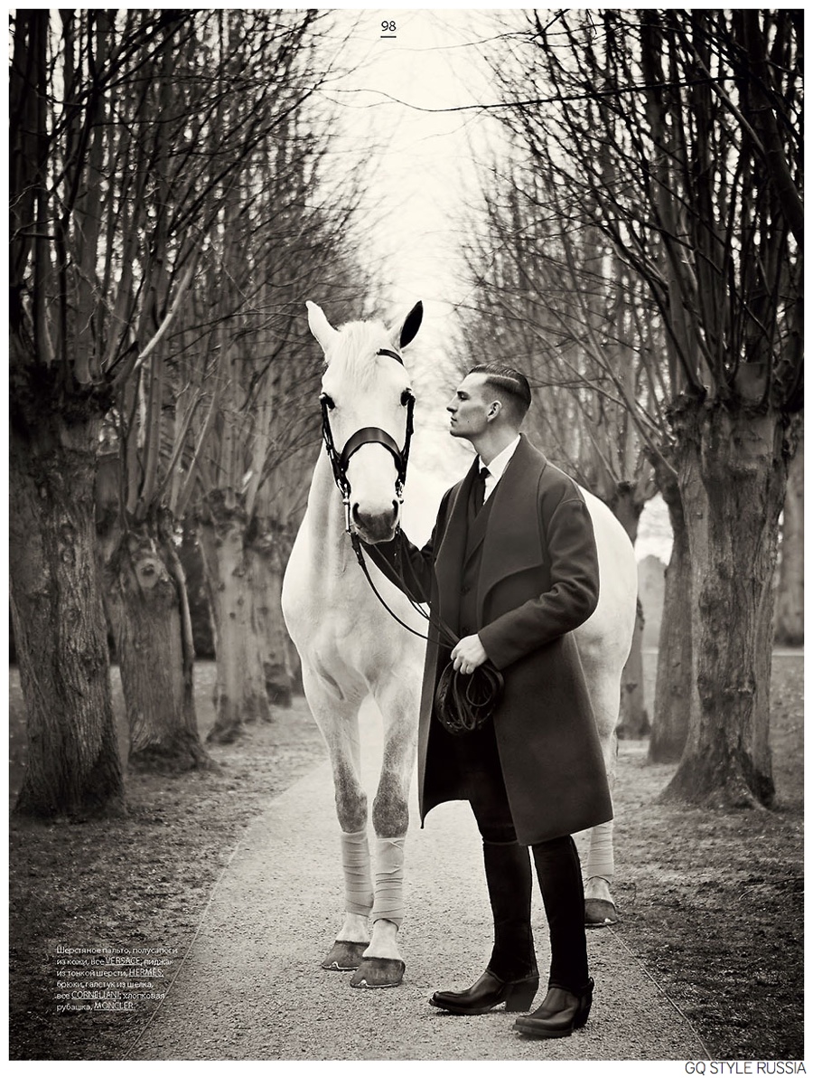 Equestrian Fall-Model Chris Folz reunites with fashion editor Ekaterina Melnikova, following a GQ Russia story for the fall/winter 2014 cover story of GQ Style Russia. Photographed by Richard Phibbs, Chris is a strong masculine vision, as he heads outdoors, donning equestrian fall fashion styles. Offering quite the dapper sentiments, Chris’ wardrobe includes sharp lines and impeccable fits, featuring clothing and accessories from Hermes, Dolce & Gabbana, Ralph Lauren and more.