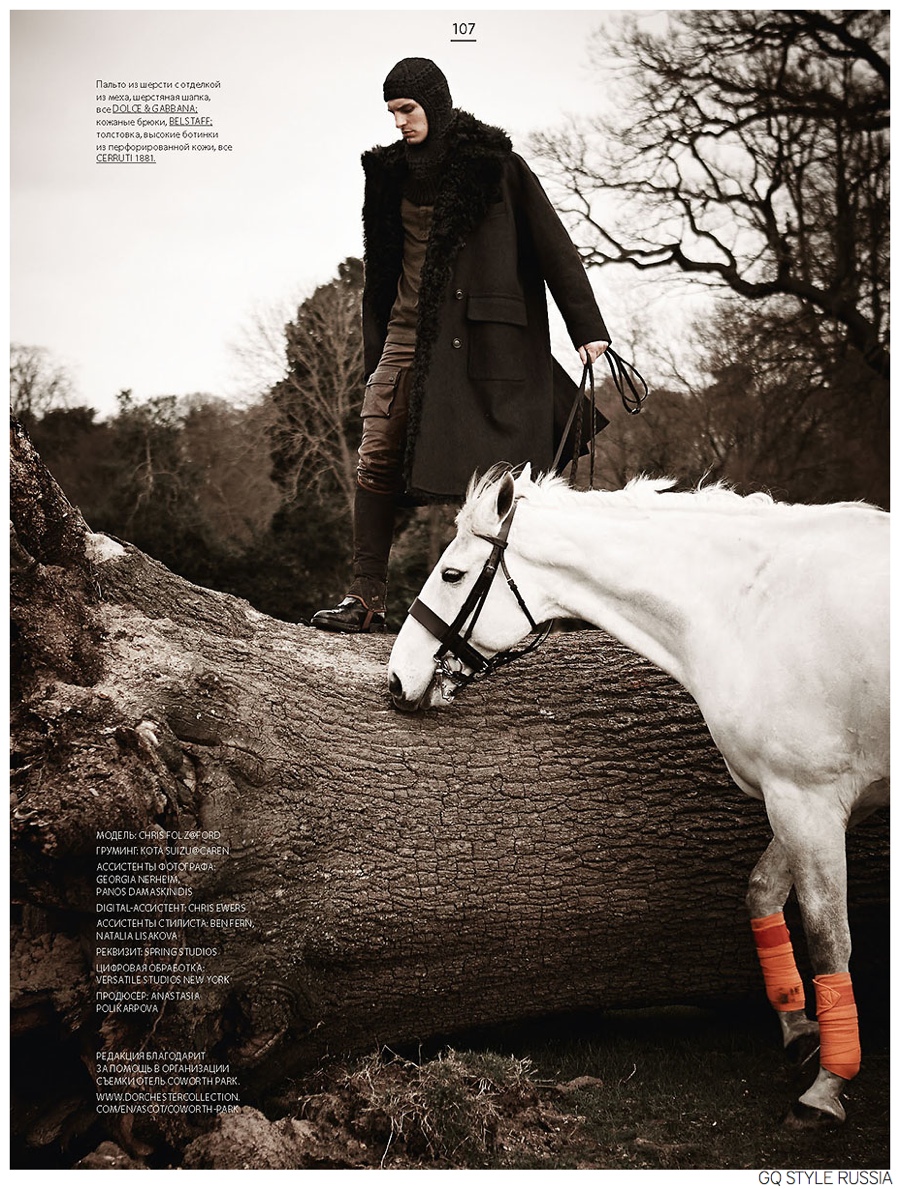 Chris Folz Stars in Equestrian Fashion Cover Story for GQ Style Russia Fall/Winter 2014 Issue
