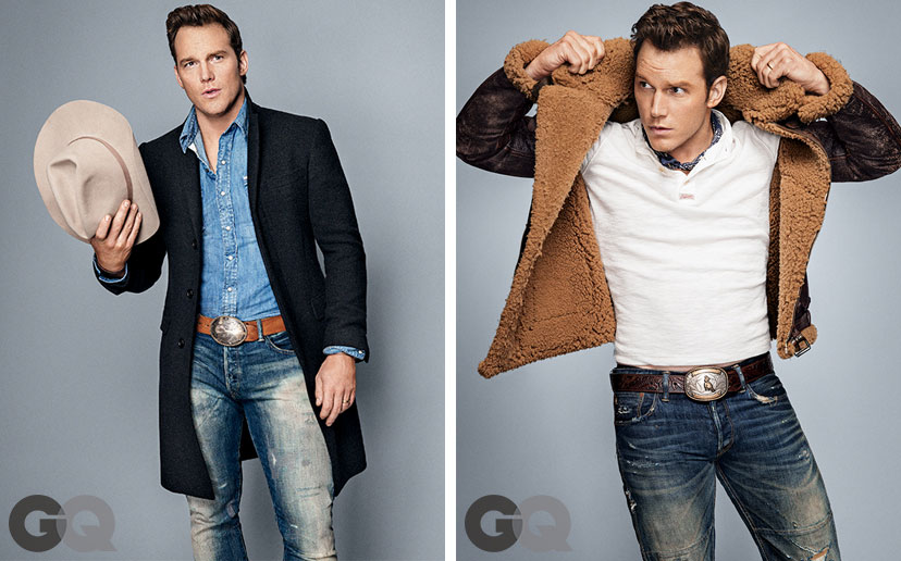 Chris Pratt Covers GQ–Guardians of the Galaxy actor Chris Pratt covers GQ’s ‘Men of the Year’ issue with a December 2014 cover photo shoot lensed by photographer Ben Watts. Wearing western styles, Pratt opens up to the magazine about his downtime, spent collecting items, owning guns and hunting. Hunting coyotes particularly, Pratt confesses, “Coyotes are assholes, and they’ll eat your dog. I do a lot of predator hunting, farm varmints, out in Wyoming. Oh, my God. Get a farmer that’s just got too many and he’s like, ‘Fuckin’ kill as many as you want.'” Read more at GQ.com.