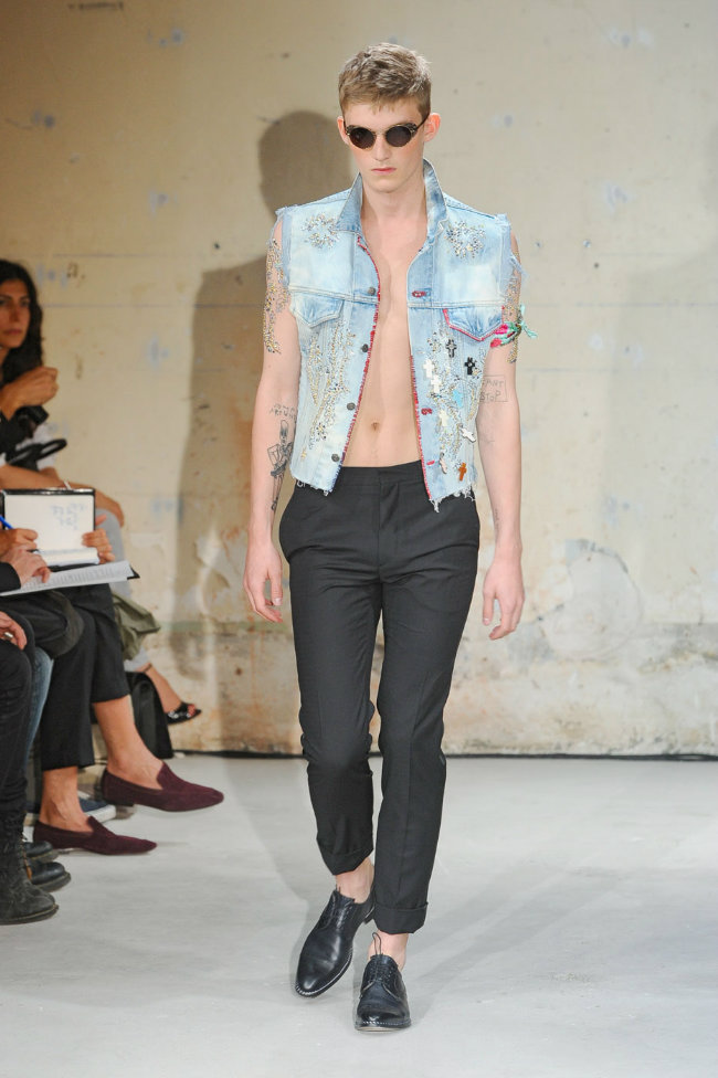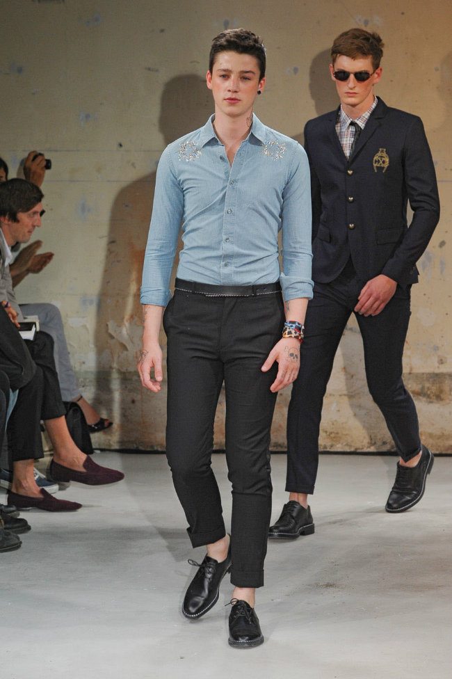 Dressing Young–Tailored and fitted, contemporary menswear was infused with an ornate sensibility for Christian Lacroix’s latest collection. Hitting the catwalk for a change, the label displayed a youthful approach to dressing up. From exposed ankles and blazers sans shirt, the brand dissected the classic suit for a flashy look that embellished with sequins for a bold outing. While several instances of styling may have been jolting, what really made an impact on the catwalk was a season of leather featuring intensive textures for a wholly modern finish that was as inspiring as it was visually striking.