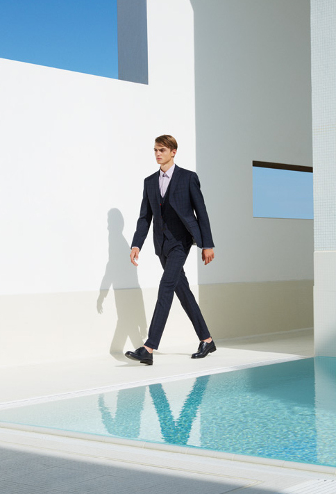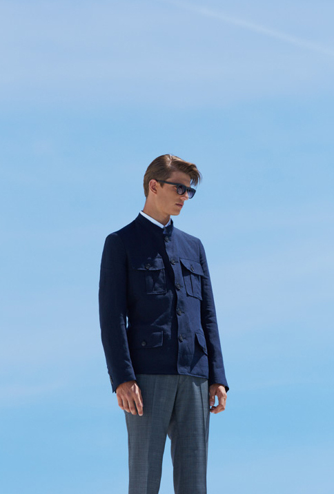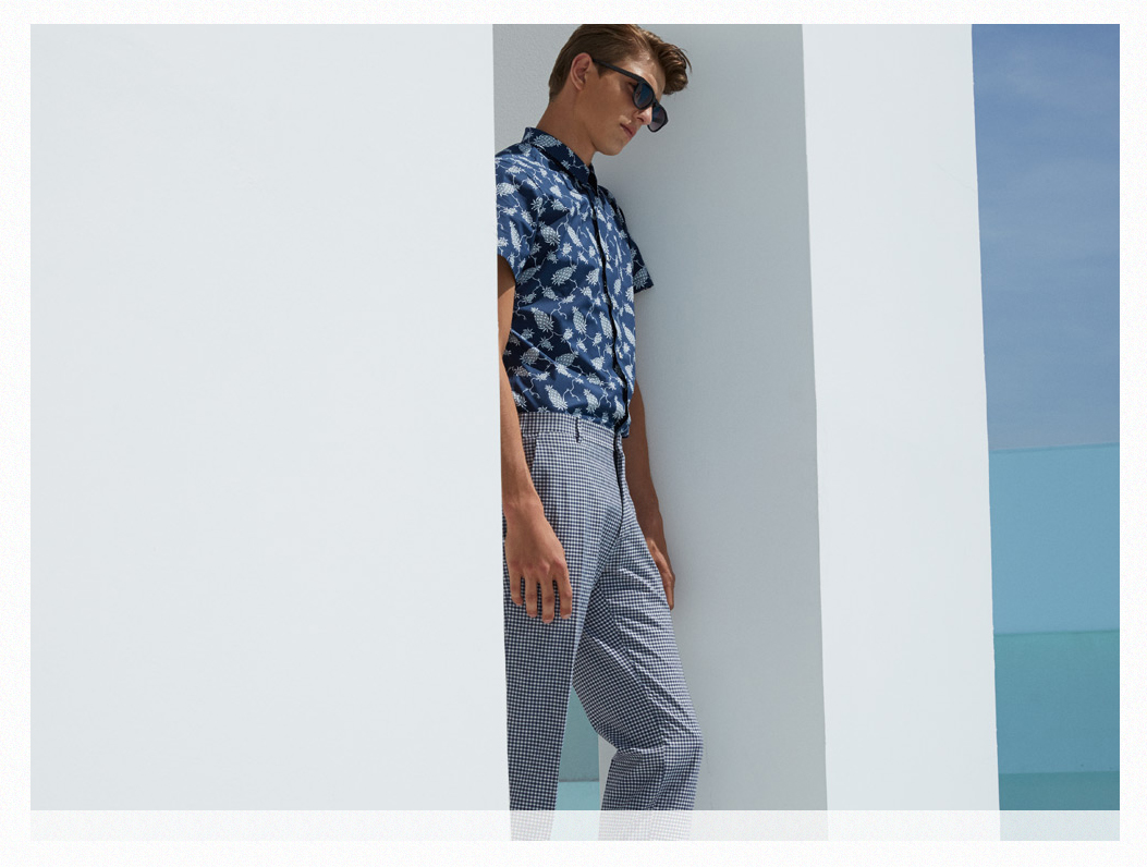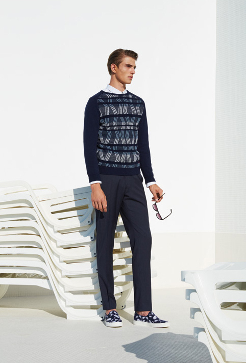 Christian Lacroix Spring/Summer 2015 Collection–Model Guerrino Santulliana is definitely in a stylish holiday mood for the newly released spring/summer 2015 lookbook of French label Christian Lacroix. Posing in a modern setting where white and blue are the main colors, the Elite Paris model is captured by photographer Nicolas Coulomb wearing the labels’ offering for next summer. In a world where everything innovates at the speed of light, and fashion trends change quicker than a ray of light, Lacroix’s summer offering is a celebration of effortless elegance. Think about the classic two-piece suit, revisited for the season in an immaculate way, and interpreted with a younger and relaxed twist, with above-the-knees shorts instead of the classic lightweight trousers. If the formal looks of the summer offering are revisiting classic in menswear, the more relaxed suggestions certainly offer slim-fitted silhouettes, embellished with colorful nature-inspired prints, or decorated with graphic patterns, like the countless butterflies in vibrant colors that adorn tapered shirts or sporty polo shirts.