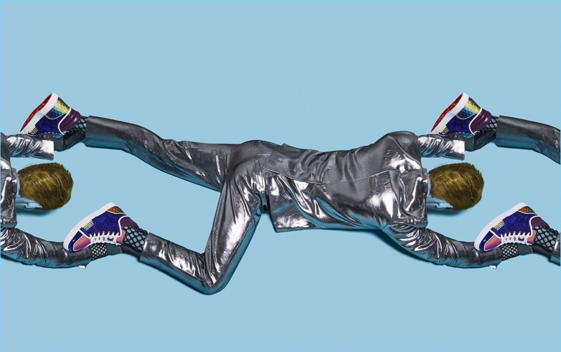 Christian Louboutin turns up the fun factor for its spring-summer 2017 campaign. The footwear label collaborates with photographer Rene Habermacher for a memorable advertisement. Models Adrien Volkov and Paul Lemaire embrace an alien persona as they sport Christian Louboutin’s bold footwear styles. Colored hair by Panos Papandrianos and makeup by Yannis Siskos really take this campaign to the next level. / Creative direction by Antoine Asseraf. Set design by Alexis Barbera.
