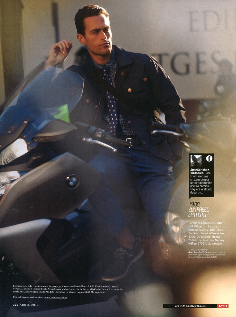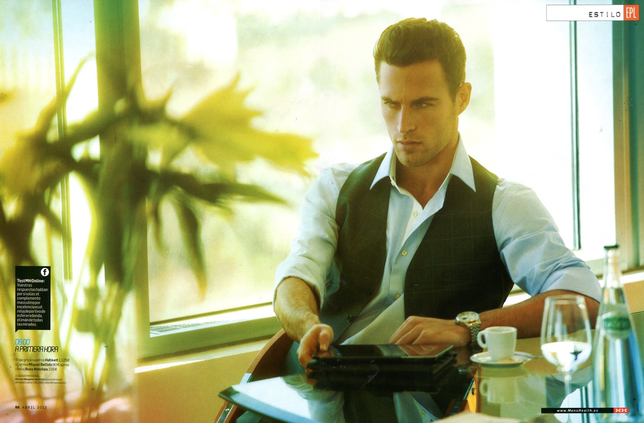 24 Hour Style–Featured in the April issue of Men’s Health Spain, model Christian Santamaria (Sight) prepares for a packed day as he goes from a crisp suit for work, to light exercise clothes for a mid-day workout, to a casual summer outfit to meet friends after his shift at the office. Lensed by photographer Edu García, Christian goes through his schedule with a confident finesse. Stylist Marina Vergés outfits the model in a range of versatile pieces, ensuring effortless style with every stop Christian makes.