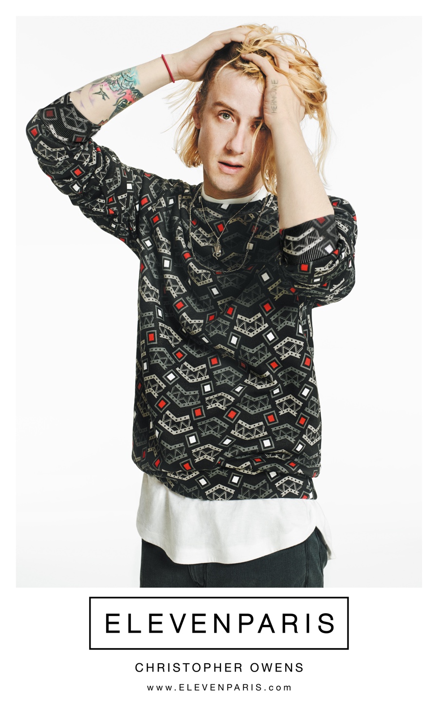 American singer Christopher David Owens stars in ELEVENPARIS’ spring-summer 2015 campaign. Owens follows in the footsteps of Wiz Khalifa and the legendary Lenny Kravitz. Photographed by Kim Jakobsen To in New York, Owens captures the rock ‘n’ roll spirit of ELEVENPARIS, hitting the studio in the brand’s latest collection, which draws inspiration from South Africa and a modern Johannesburg.