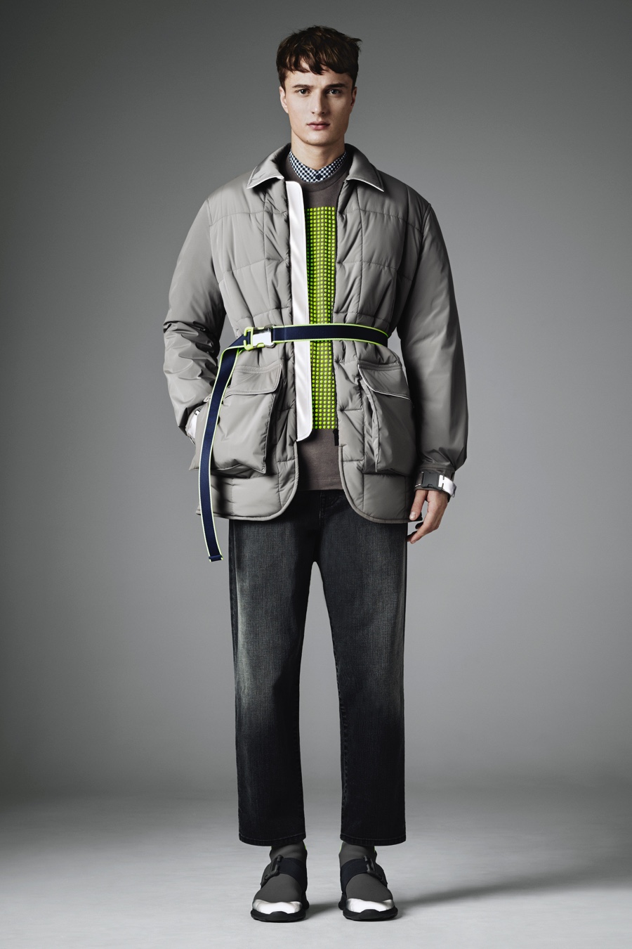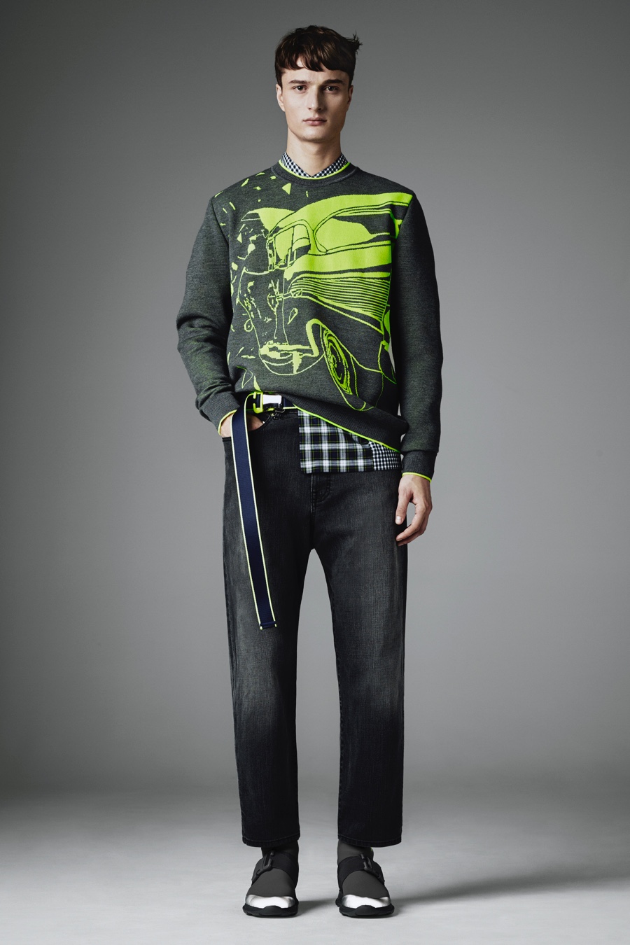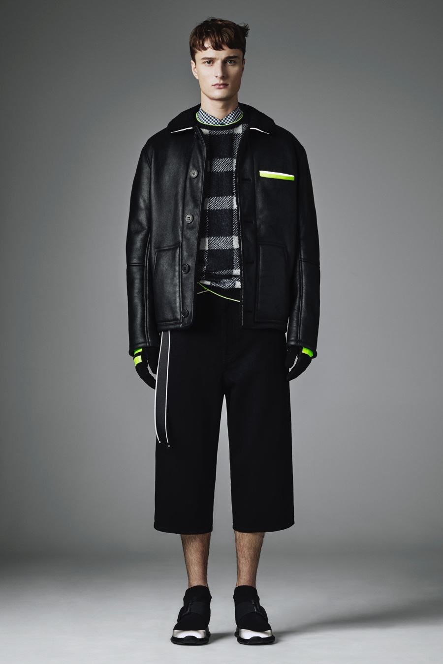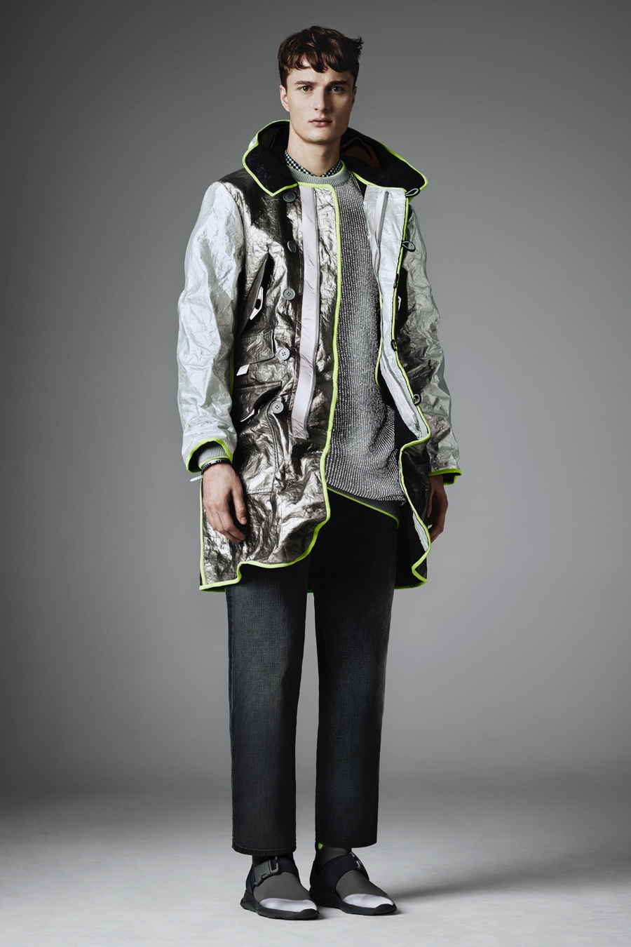 Christopher Kane looks to city streets, crashed cars and crushed steel for the inspiration of his fall-winter 2016 men’s collection. The designer shares, “It’s the shine of high-vis neon and reflective fabrics in city lights; a modern wardrobe of new, casual luxury without formalwear.” Kane continues, “I wanted something strong and tough–the inspiration originally came from the ‘car crash’ sculptures of John Chamberlain–but made sophisticated and wearable. I think it’s a collection that really reflects the world around me; it’s literally about the street.”