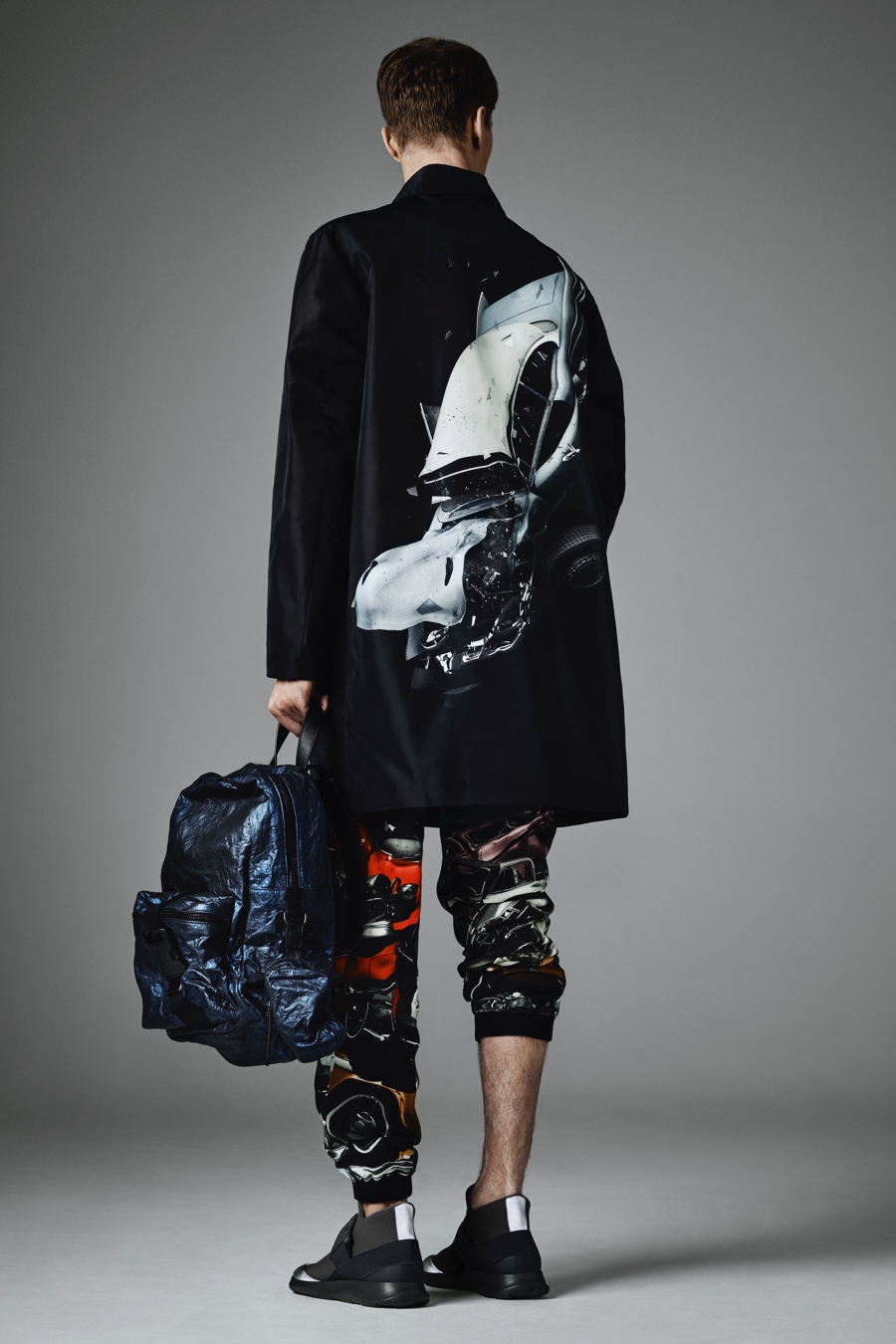 Car crash visuals are the standout for Christopher Kane’s fall-winter 2016 men’s collection.